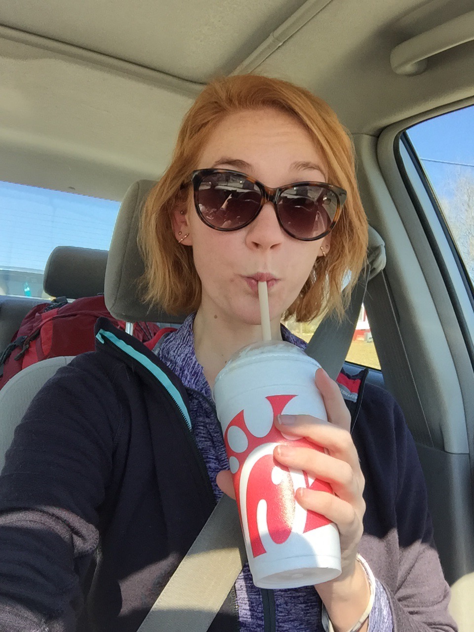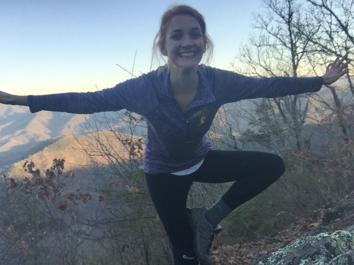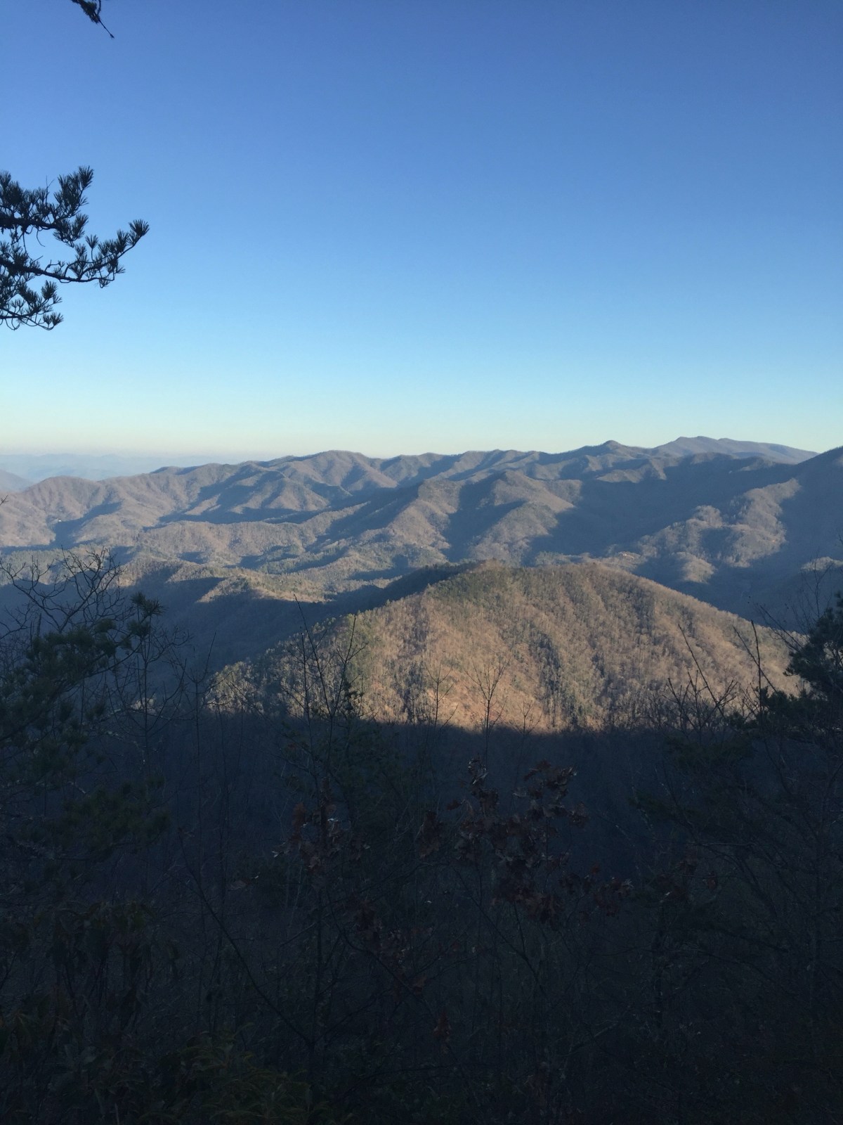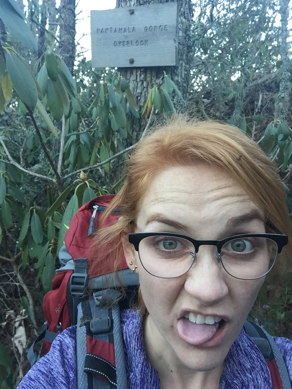 I got a free chocolate shake when I stopped for chick fil a, which was nice. And my shuttle, Andrea, from The Hike Inn, was delightful. But it was a rough hike today. There were bright spots, like this overlook with the warm sun beaming into my face: