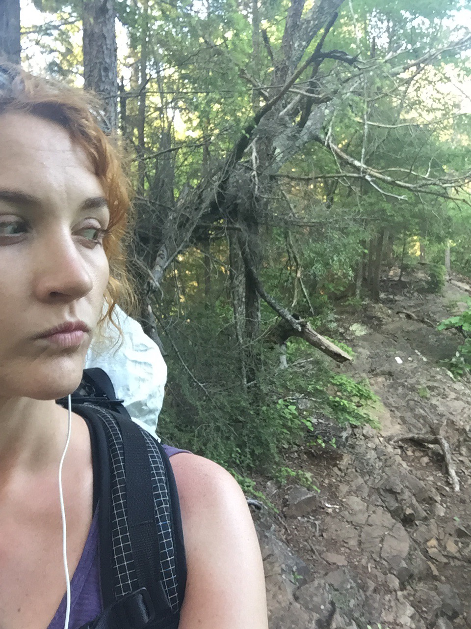 I hate it any time the blaze is painted on a rock. It’s never a good sign. But tell me, how can you not fall in love with the trail when it pushes you 27.1 miles, and then the last tenth is the thing you hate the most? All you can do is grin, and go. And when you get to the top, and look back at what you’ve just climbed when your feet were already screaming from blisters that had torn open miles ago, and your stomach is protesting the fact that you never stopped for a real lunch or even a snack, and your triceps are exhausted and all you want is just to sit and drink water and take off your shoes (but you can’t because you were too lazy to fill up your water at…any of the water sources when you should have)…that feeling is what keeps me coming back. That feeling that every time I do more than I think I can. I have yet to find a limit. There is nothing I cannot do. There is no mountain that can defeat me. There is no pain that I cannot push through. There is no amount of exhaustion or hunger that I can’t overcome and beat down to submission. I am the master of my body and my will is supreme. And I am an unstoppable force.