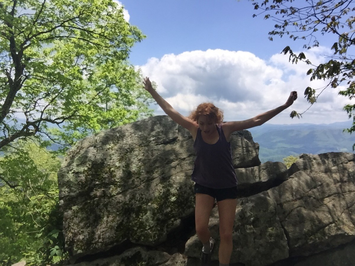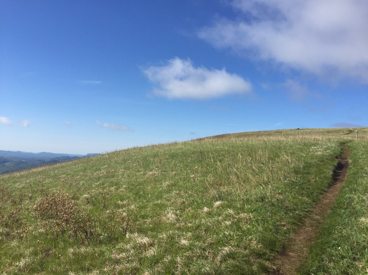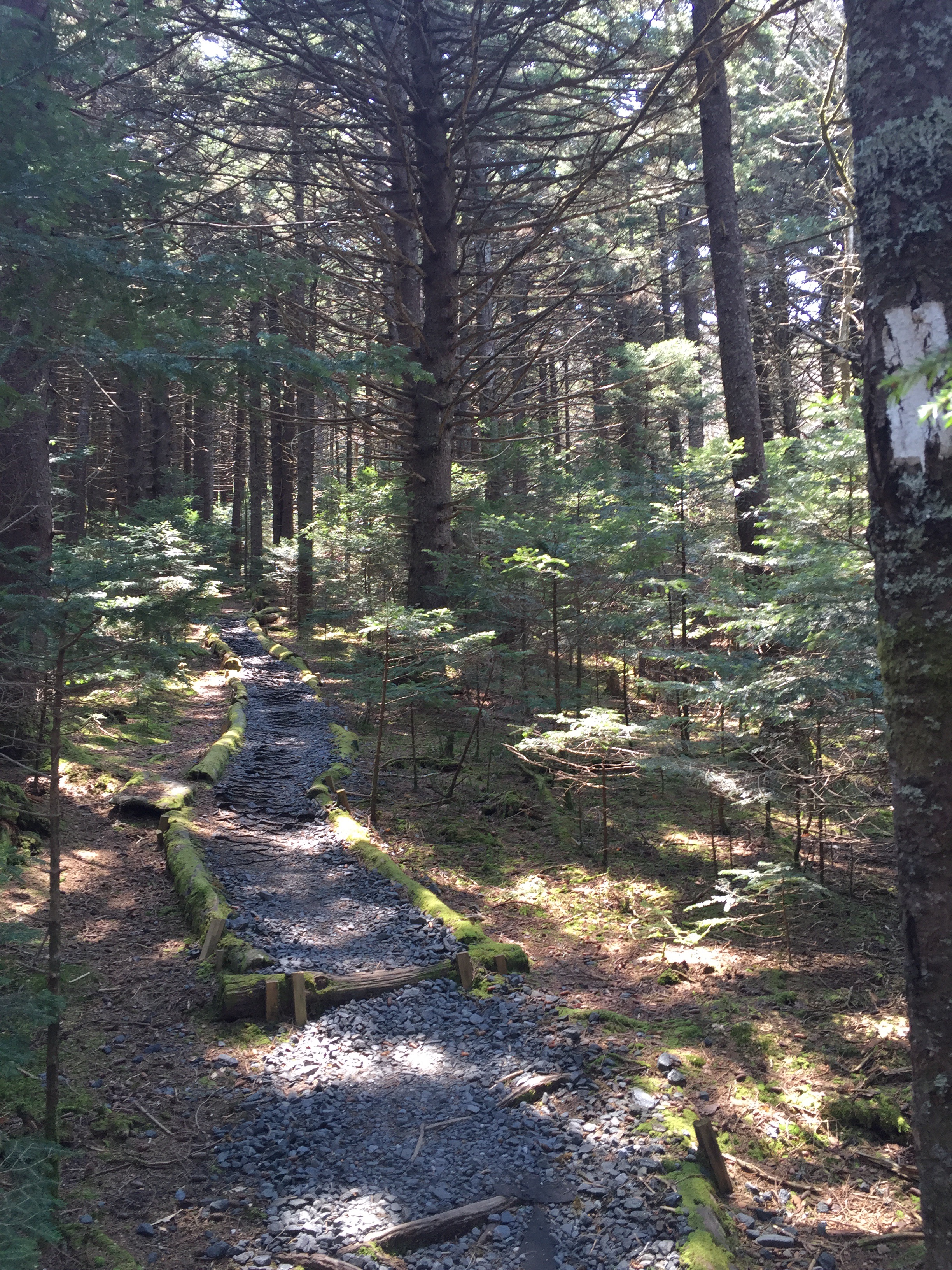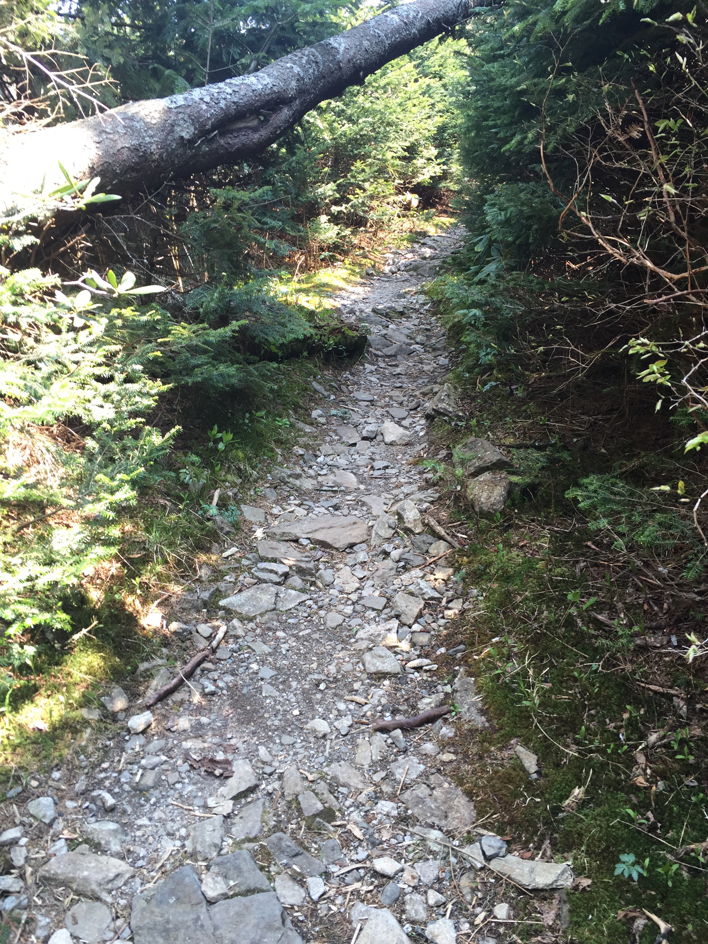 This section was just…a lightening of my spirits. I put in my headphones, I tightened my pack against my back, and I forgot about everything. There was sun and I was happy. At one point, a saddle between two balds, the trail was smooth flat dirt, so I ran. I stretched out my arms and lengthened my stride and quickened my pace and let my face break out into a grin and I sprinted. I skipped some. I trekking-pole-fist-pumped. I air drummed. I spun circles. I shoulder shimmied. And then I noticed that I was on grassy bald and it was a VERY popular destination for day hikers. Whoops.