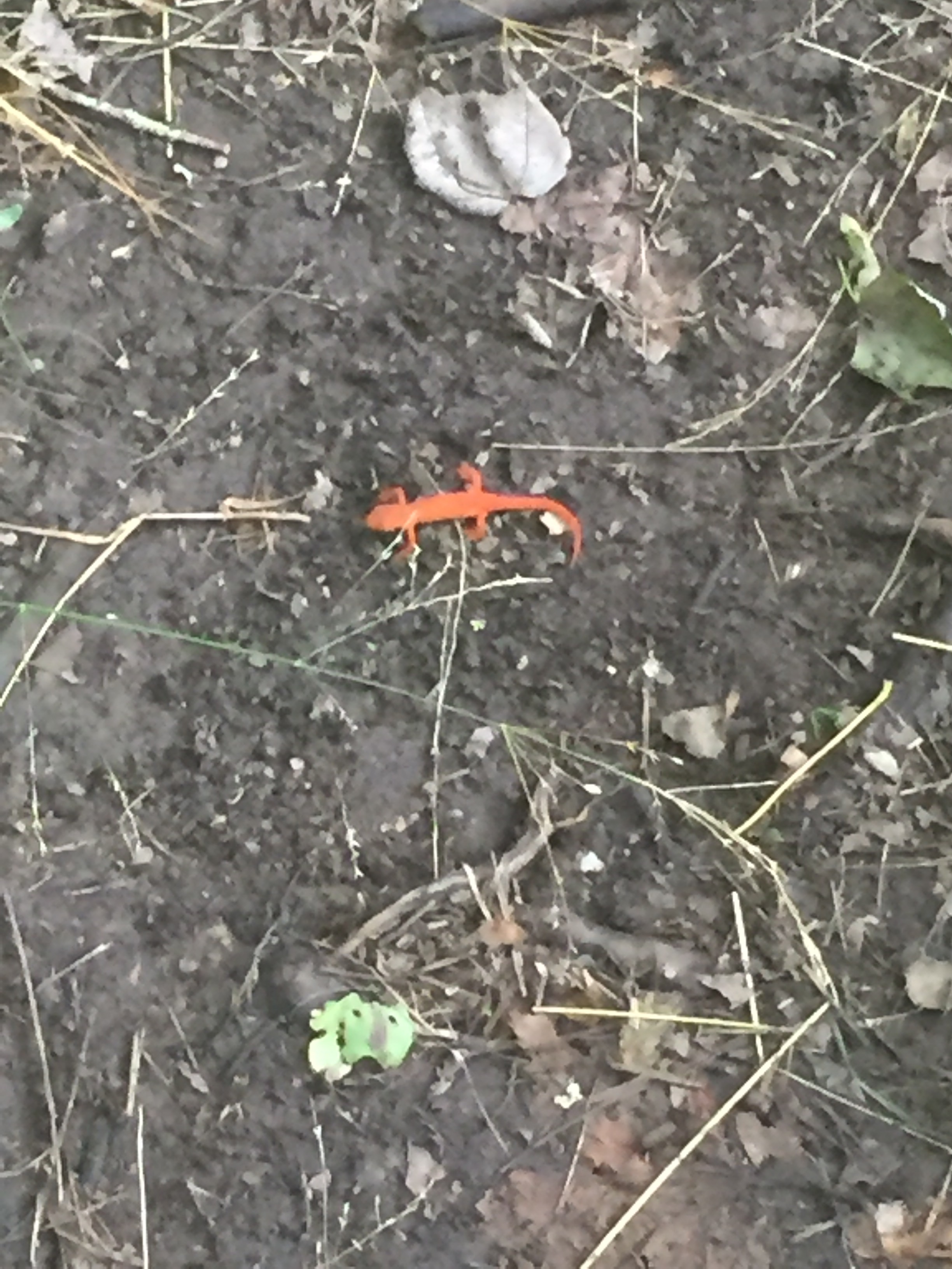 These fat little orange newts were all over the trail. One was remarkable fat (not this one) and slow. I named him Gus Gus.