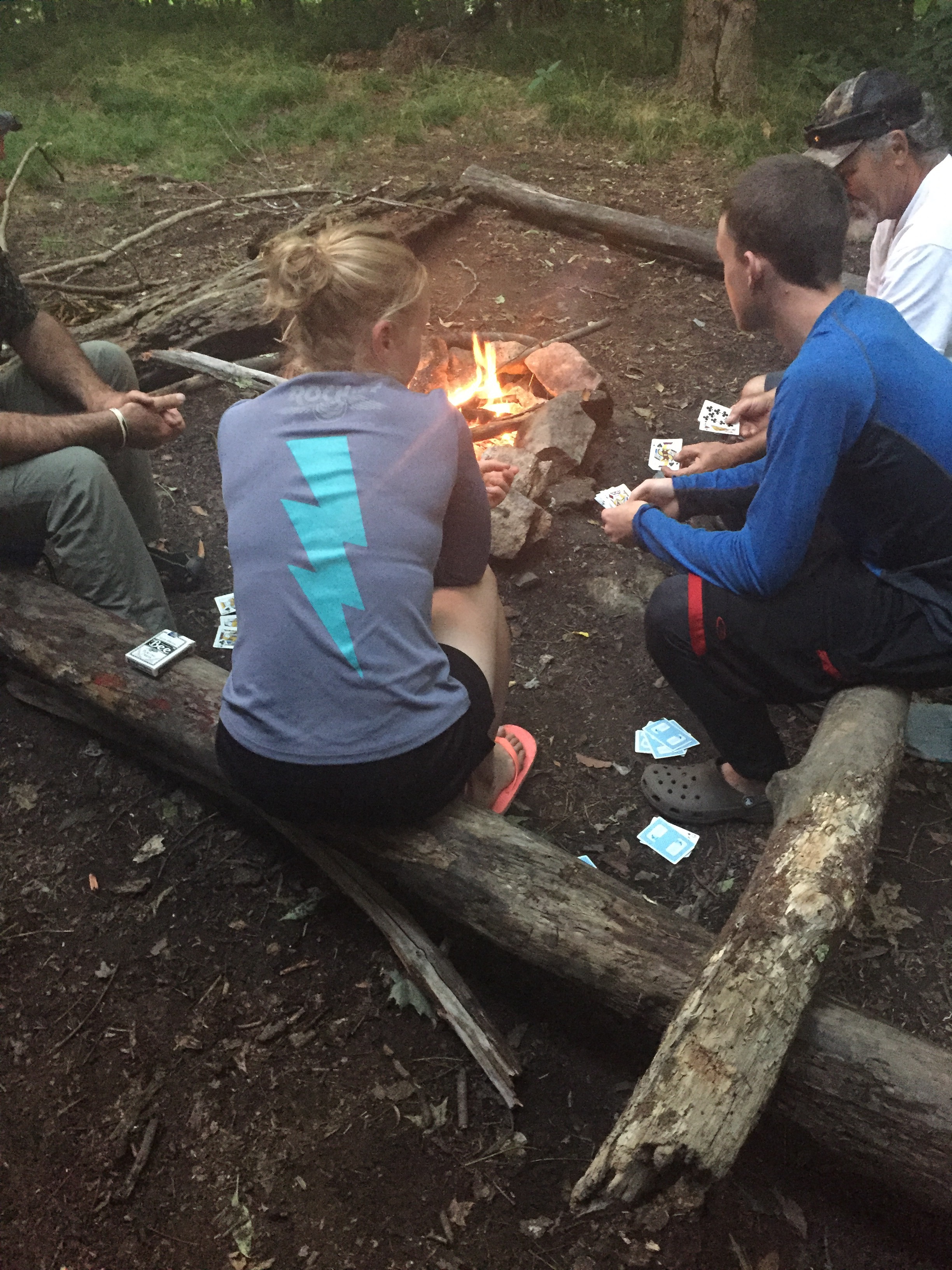 We built a fire, and then played some euchre. Leapfrog popped out of his tent as soon as he heard the word euchre. I’d been pretty annoyed with him, mostly for some snide section hiker comments (“nice! Section hikers always have a fire! Thru hikers are just too tired after 15 miles to bother.”) but I guess he wasn’t too terrible. Or maybe he was. I didn’t really like any of them. (The LASHers said “we’re doing half the trail, so we’re practically thru hikers” and I immediately wrote them off.)