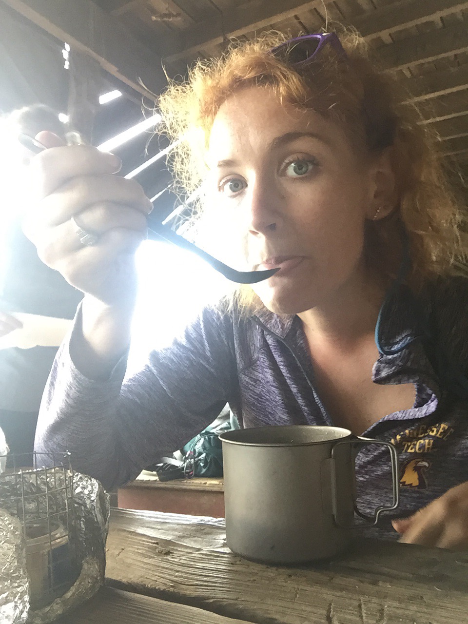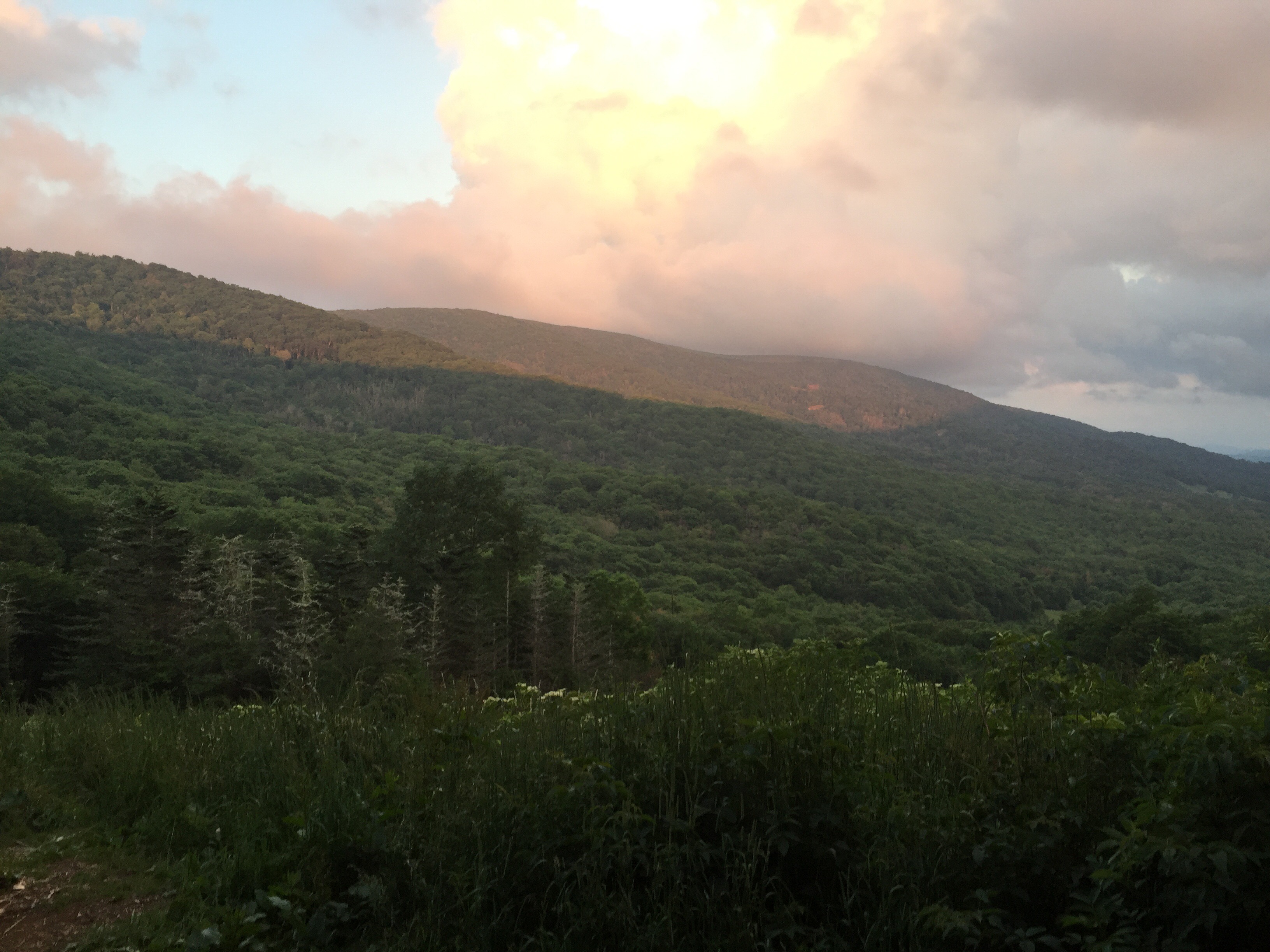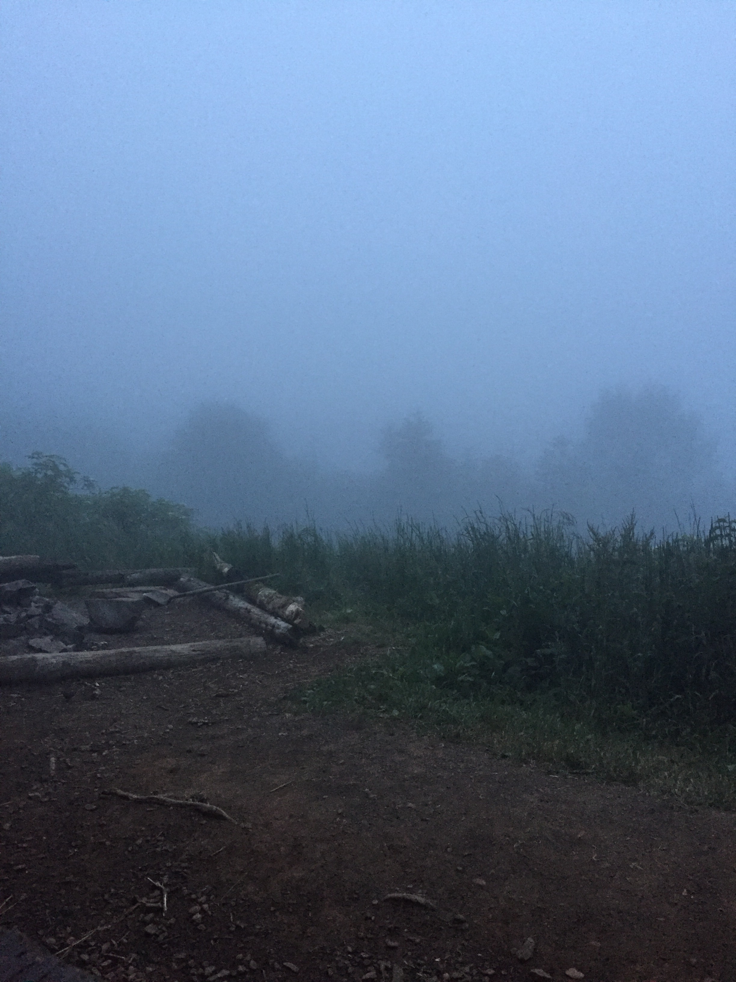 We woke up damp from the clouds that had wrapped around us in the night. There had been no loud sunrise; just a quiet brightening behind fog. The four of us sat around talking for hours, waiting for the skies to clear, hoping to get a view on Hump. And the waiting paid off. (the jerk hikers did not wait and rushed off on a 9 mile hike and got no views from Hump. Ha.)