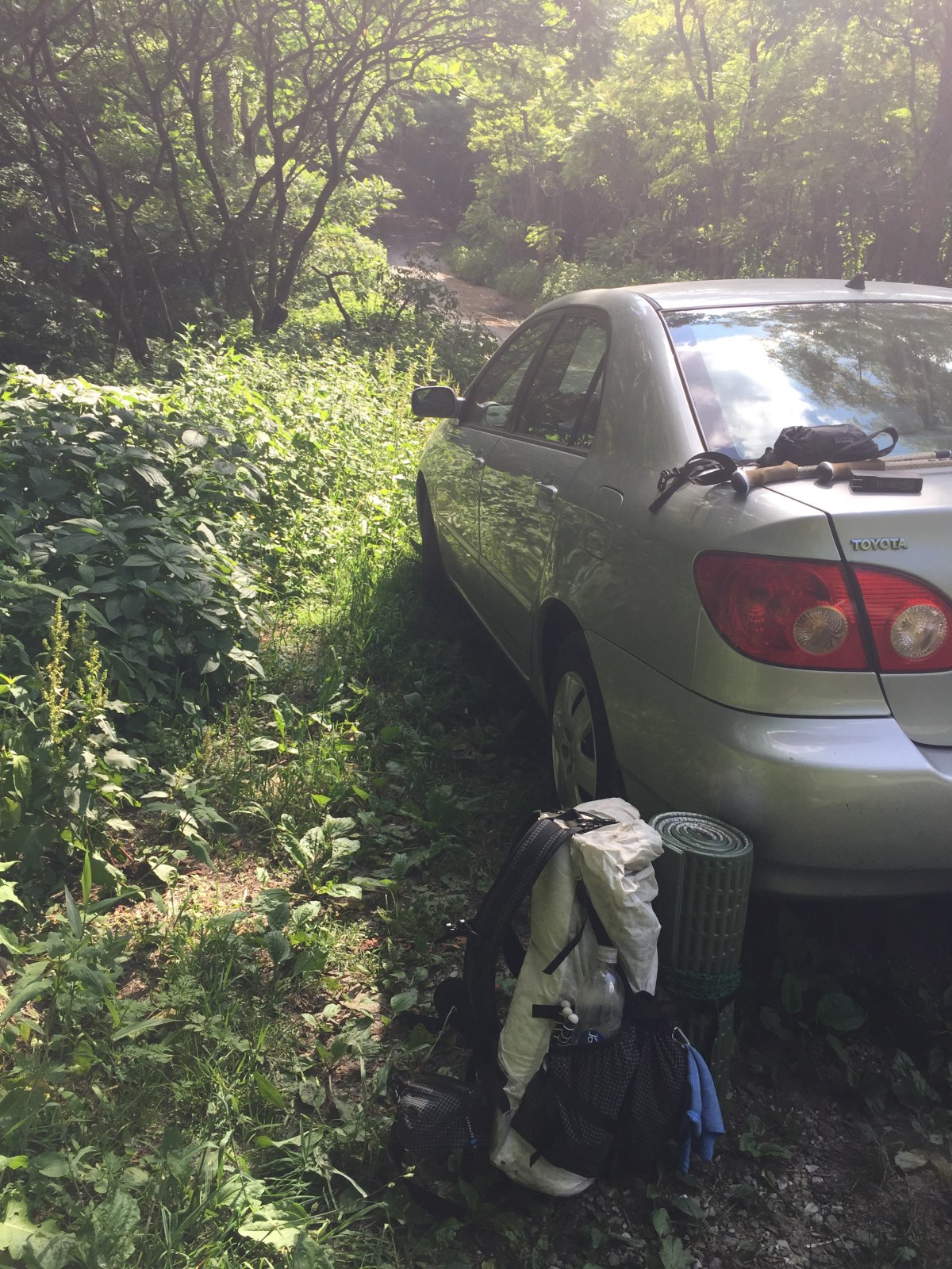 Thursday came, and I left work early feeling poorly. A trip to the doctor and a few hours sleeping and I was like new, more or less. I left for 19E late, but we’d already arranged to tent separately and just meet up in the morning. I ended up sleeping in my car. With my mouse friend.