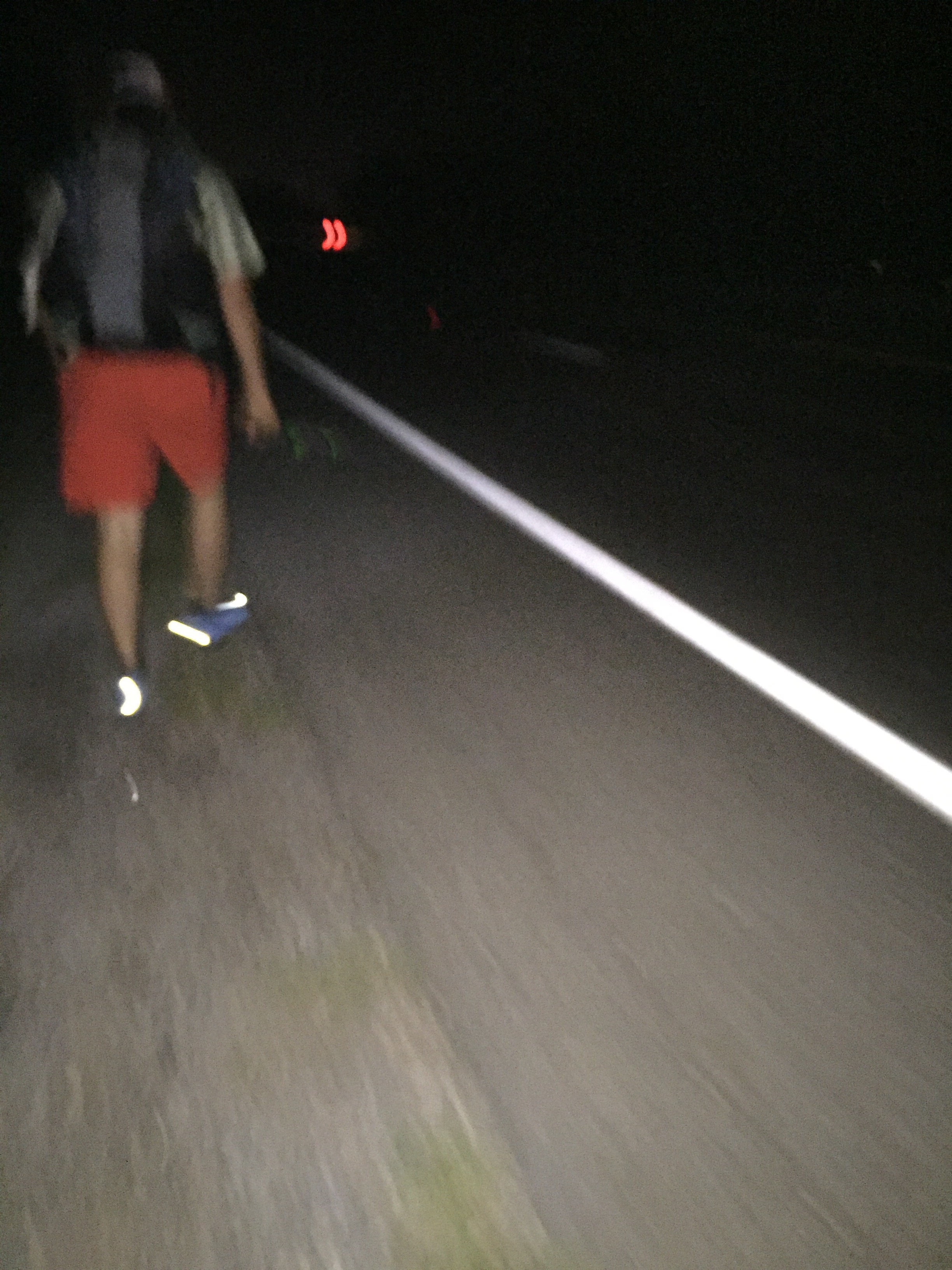The night was hot and muggy, and we quickly drained liters of water. Fireworks shot off in the distance, and spider eyes quivered in the reflection of our headlamps.