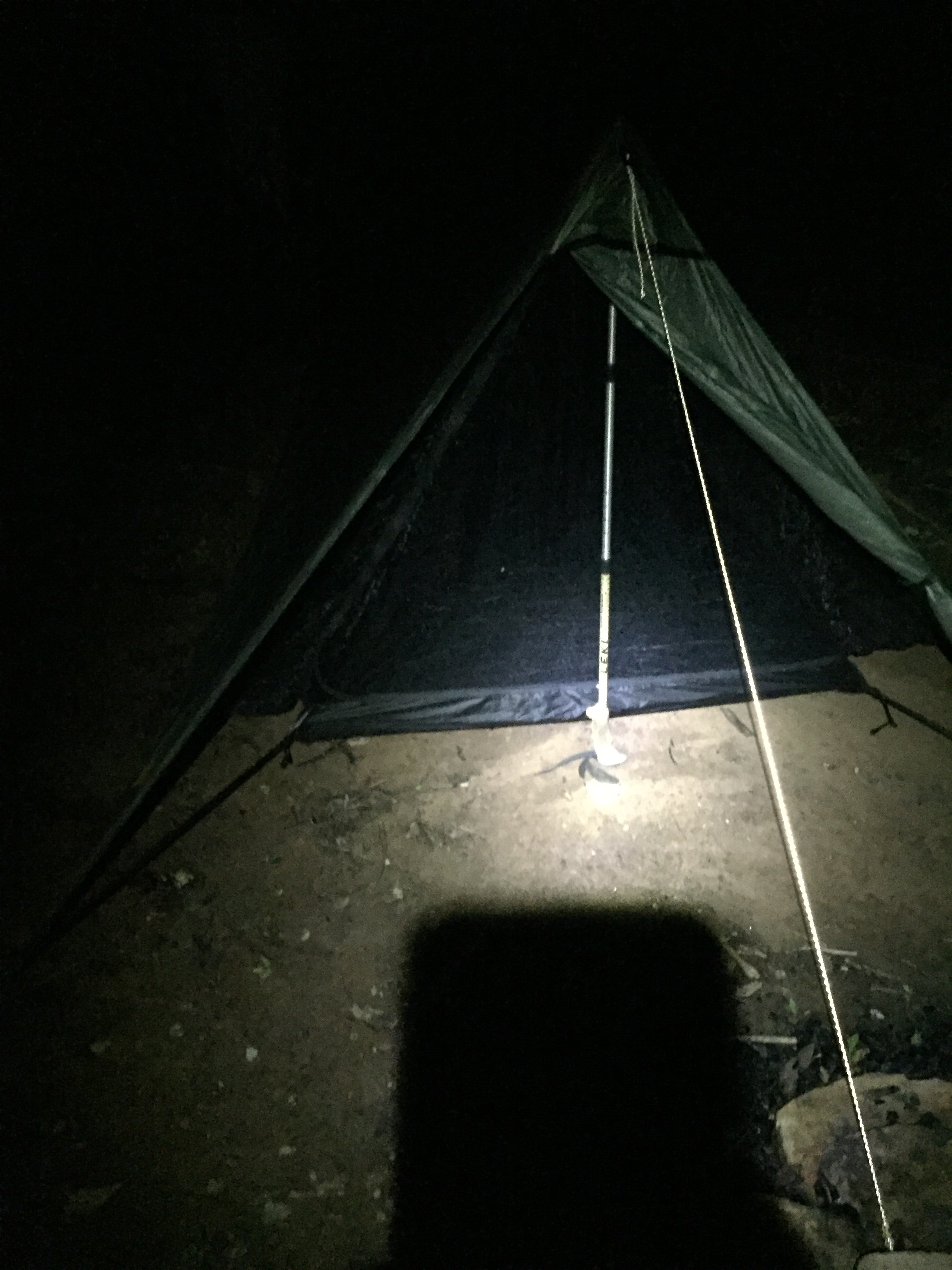 Goat Gas was talking about having lost his bear bag rope.. and earlier that day I had found a small bag with rope in it on the trail. I’d picked it up. I told him, and indeed, I had found his lost rope. He gave me chocolate in thanks. And just when is been wanting chocolate but was too lazy to get up and get it out of my food bag!