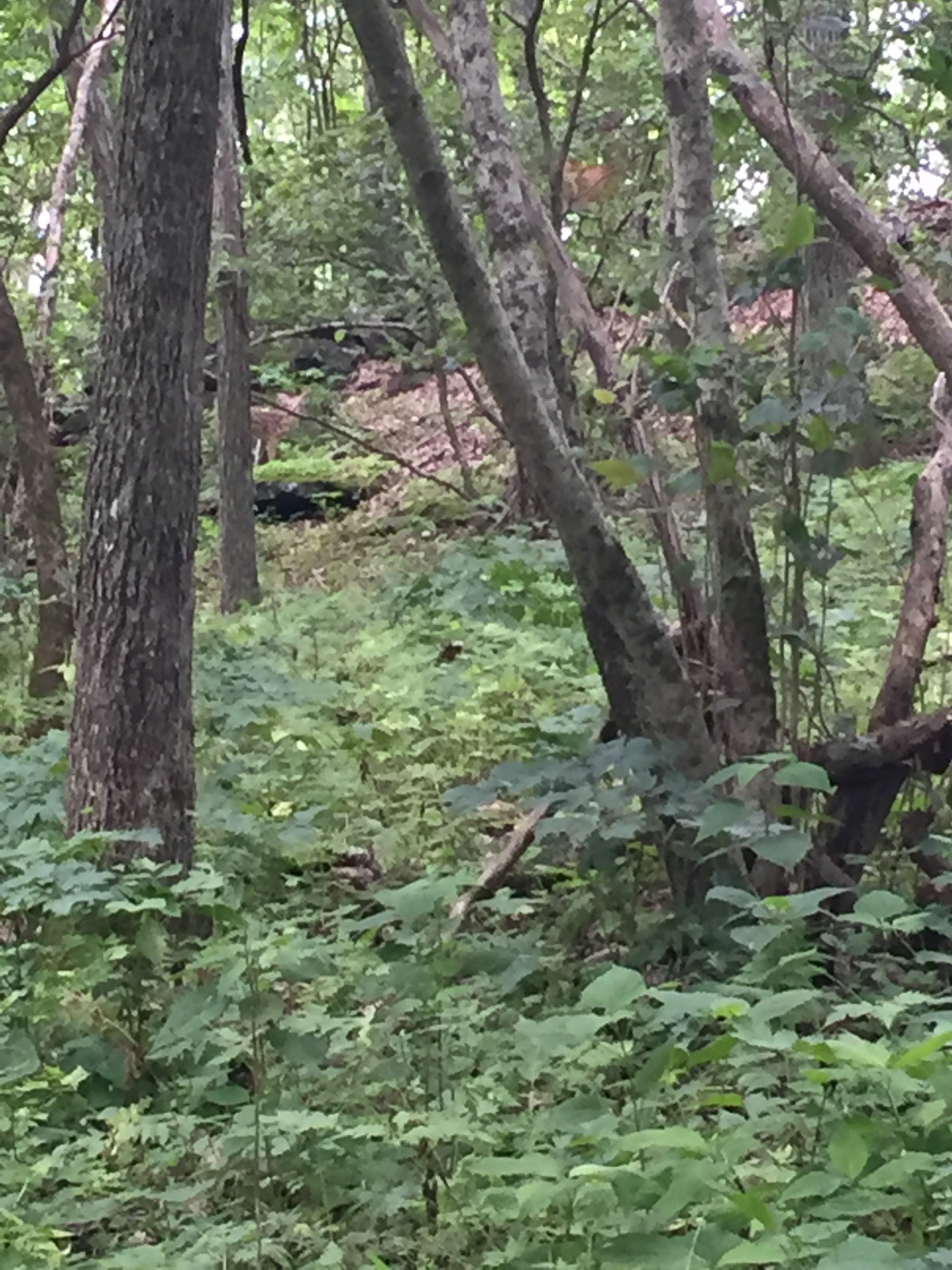 We saw a mama deer and her fawn up on a ridge. They stared at us, and kept on eating, slowly moving their way up the hill.