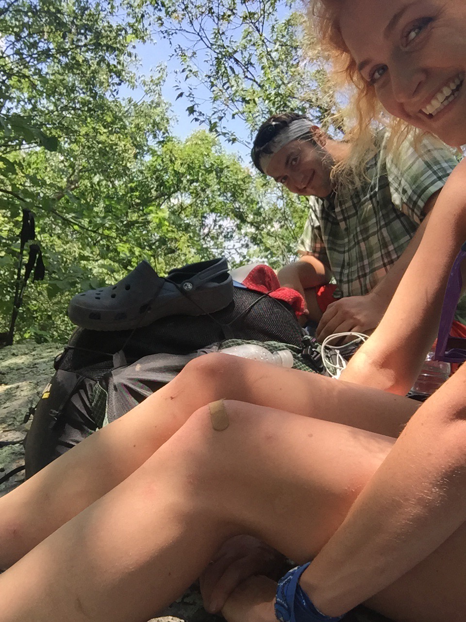 We found two section hikers at the shelter. They had their stuff all spread out and were nice but clueless. They soon left for more hiking. It was pretty early; maybe 2 or 3 PM.