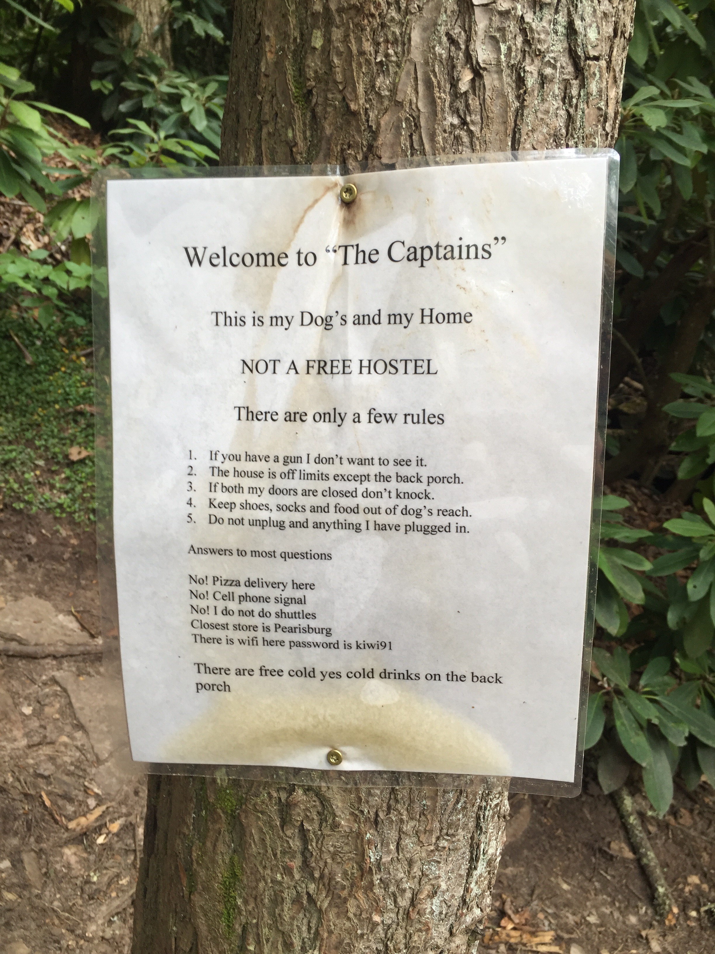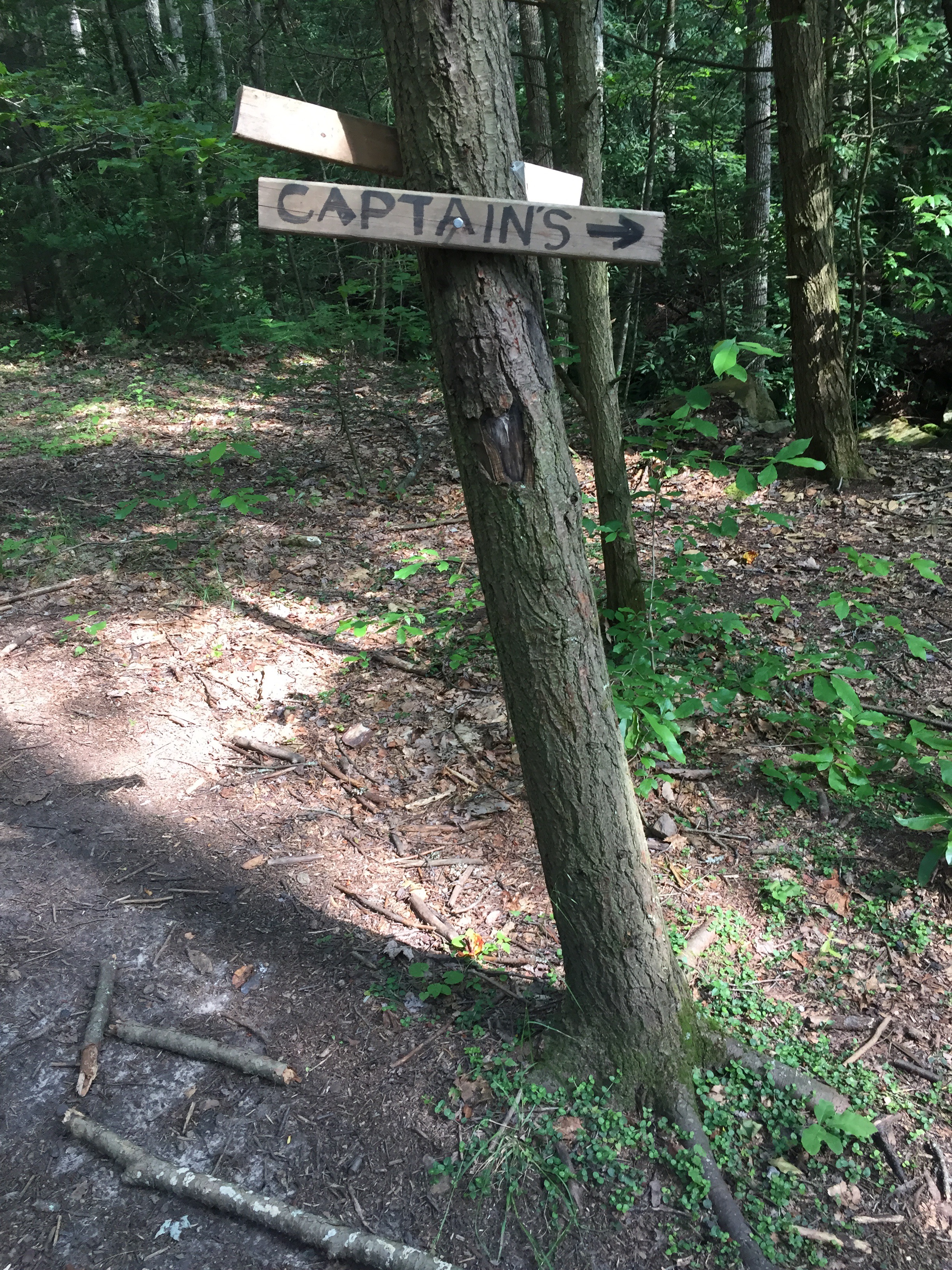 I woke up refreshed and hungry. I ate powdered donuts in bed, then had a bag of Doritos while I watched Gambit pack up, and then we hit the trail. Since we’d hiked so much farther than we’d intended to last night, our trip today was shorter. The trail was mostly sweet and flat. We stopped at Rice Field shelter for a break, and that’s when we met Lead Dog. She was out for a training hike before a trip to New Hampshire to finish up some miles. She was a local, and she filled us in on the Posted signs, the Captain, the recent re-route of the trail, and all manner of other things. She was full of energy and information and I liked her immediately.