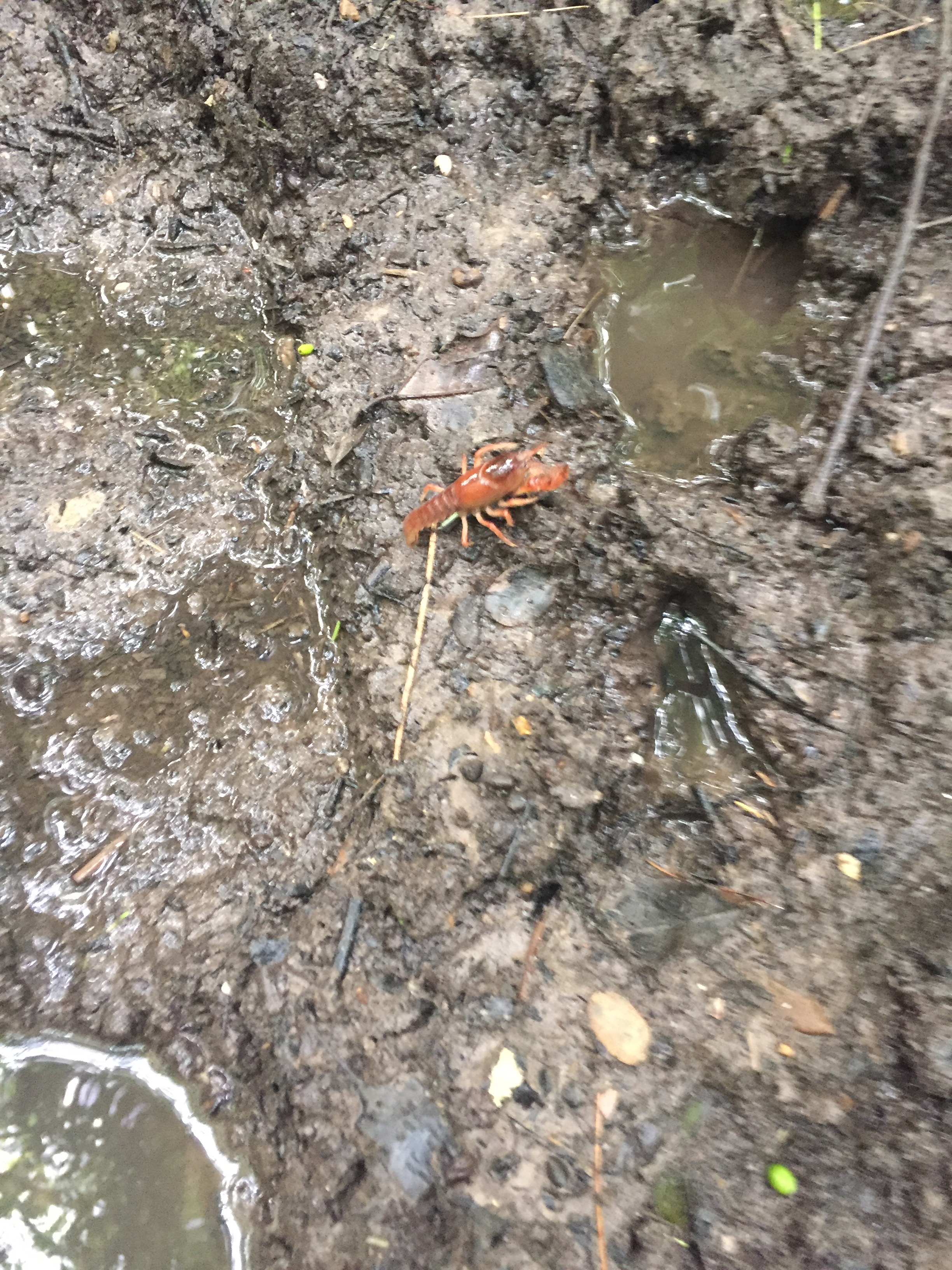 We got up and started hiking eventually. The trail was flat and muddy and soft and a pleasure to hike on, and even came with a craw daddy!