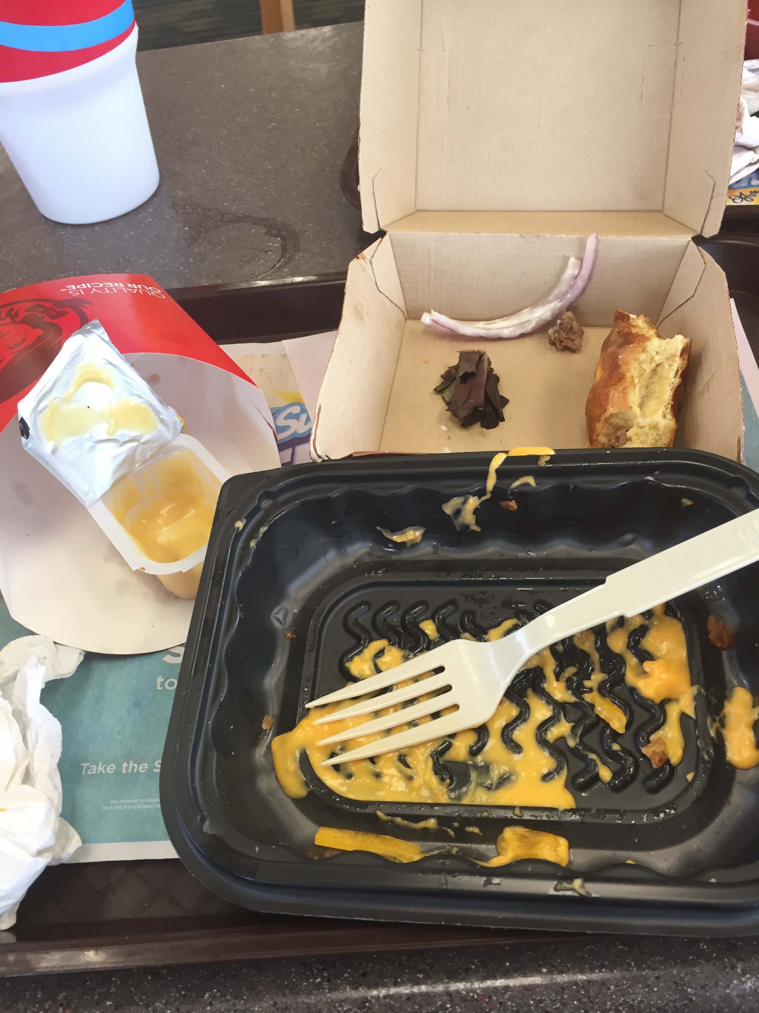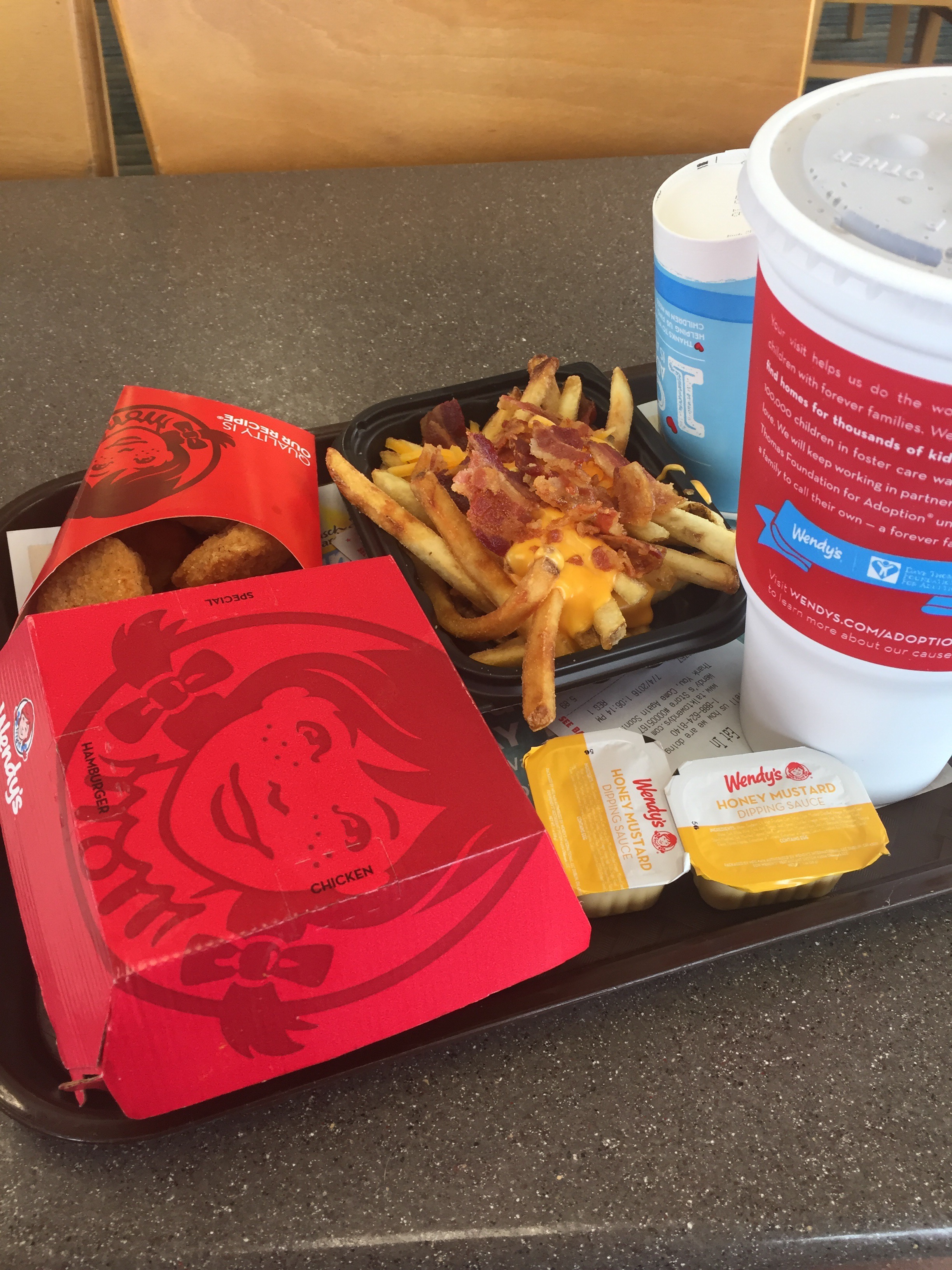 We found out that our pizza place was closed so we settled on Wendy’s. I ordered food and I ate it all.