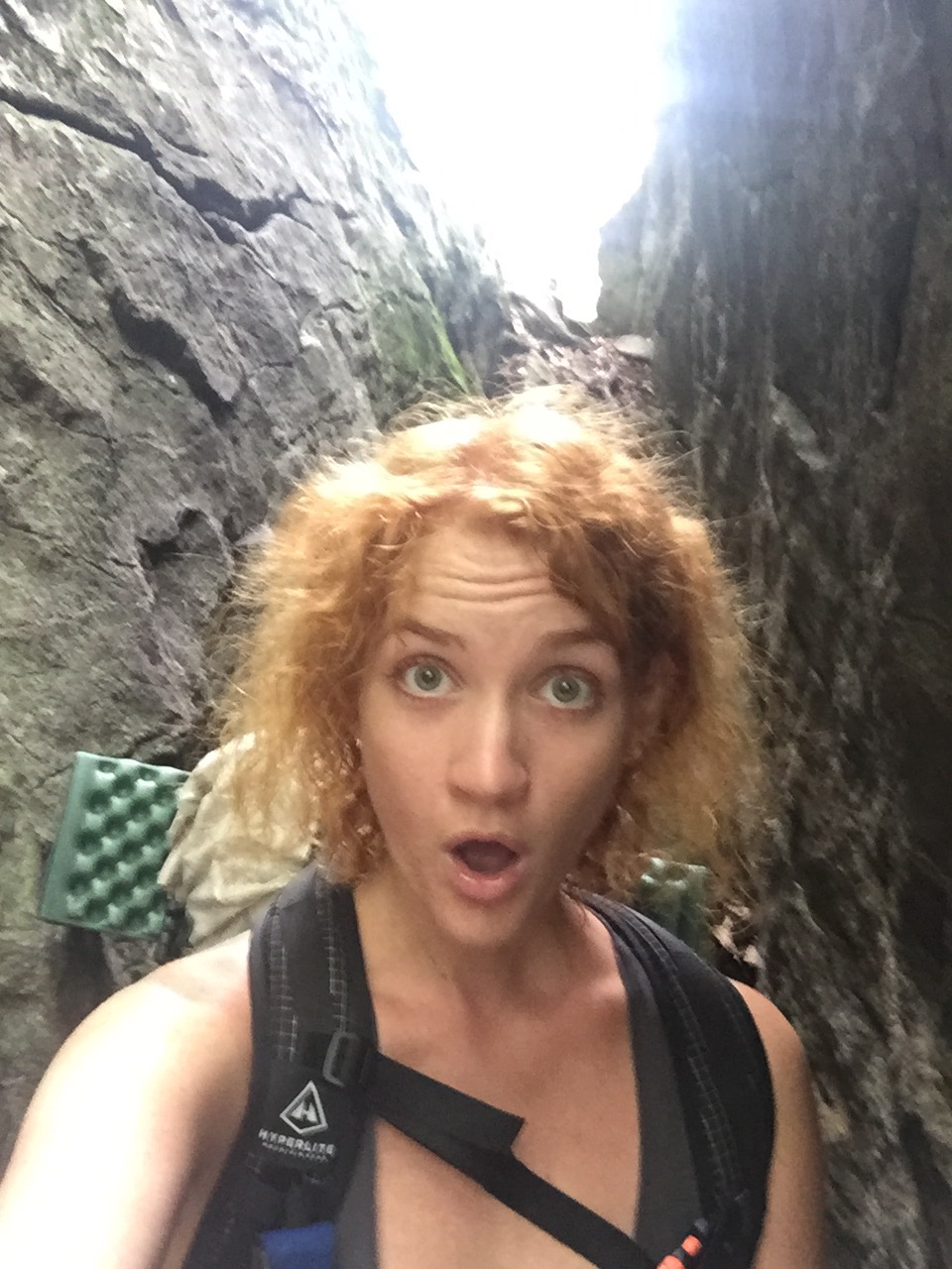 As it turned out, I did. I stayed longer than I meant to, but it was so nice chatting with them that I just couldn’t leave. They told me about this band of roving NOBOs we’d all run in to (they yelled “SOBO coming! Hide your stuff!!” as I stood aside for them, and then, “hey, don’t you know you’re going the wrong way??”). Evidently when they came across Bent, they’d said, “SOBO! Hide your stuff! Oh hey, SOBO, I saw the hottest hiker I’ve ever seen today, and she was SOBO. She had a smile that could steal souls.”