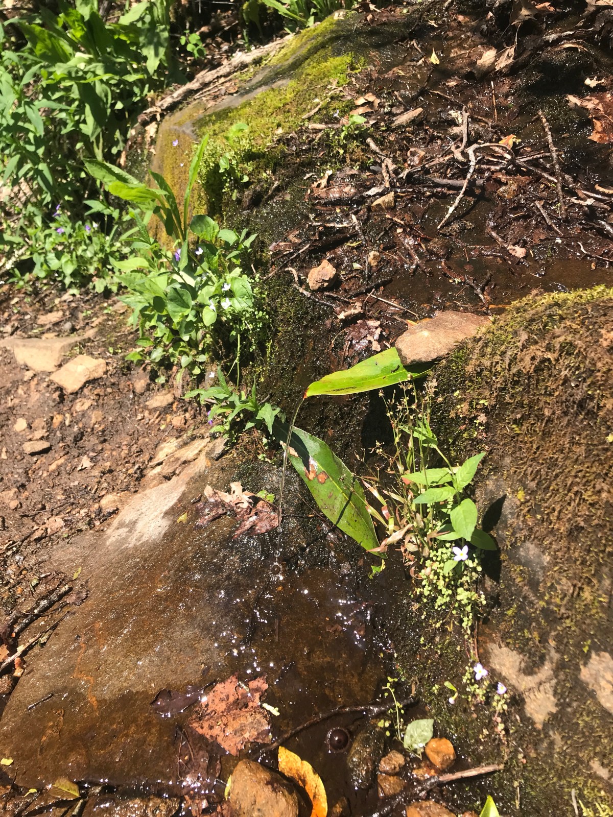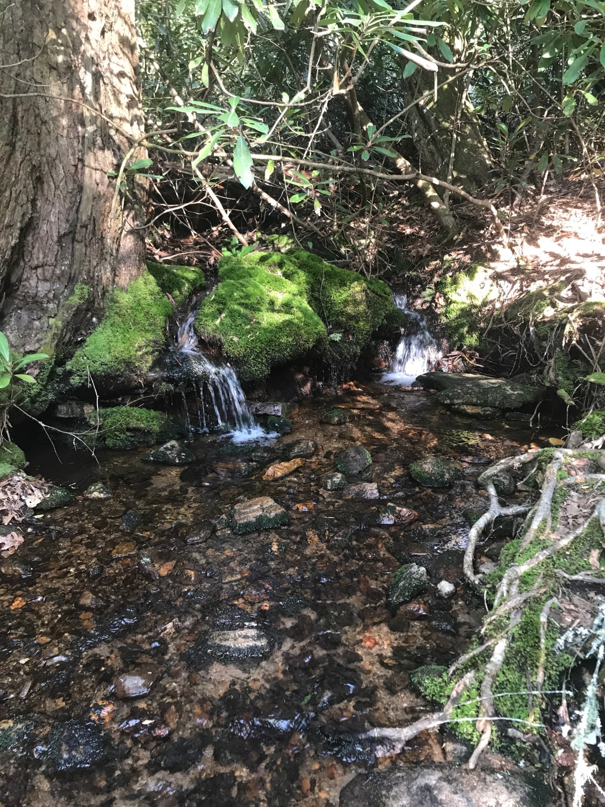 But I hiked on, determined to at least get over Albert Mountain. I stopped for water and a quick rinse off just before Albert Mountain. It was hot, but with so much sun I needed to keep long sleeves on. I was sweaty.
