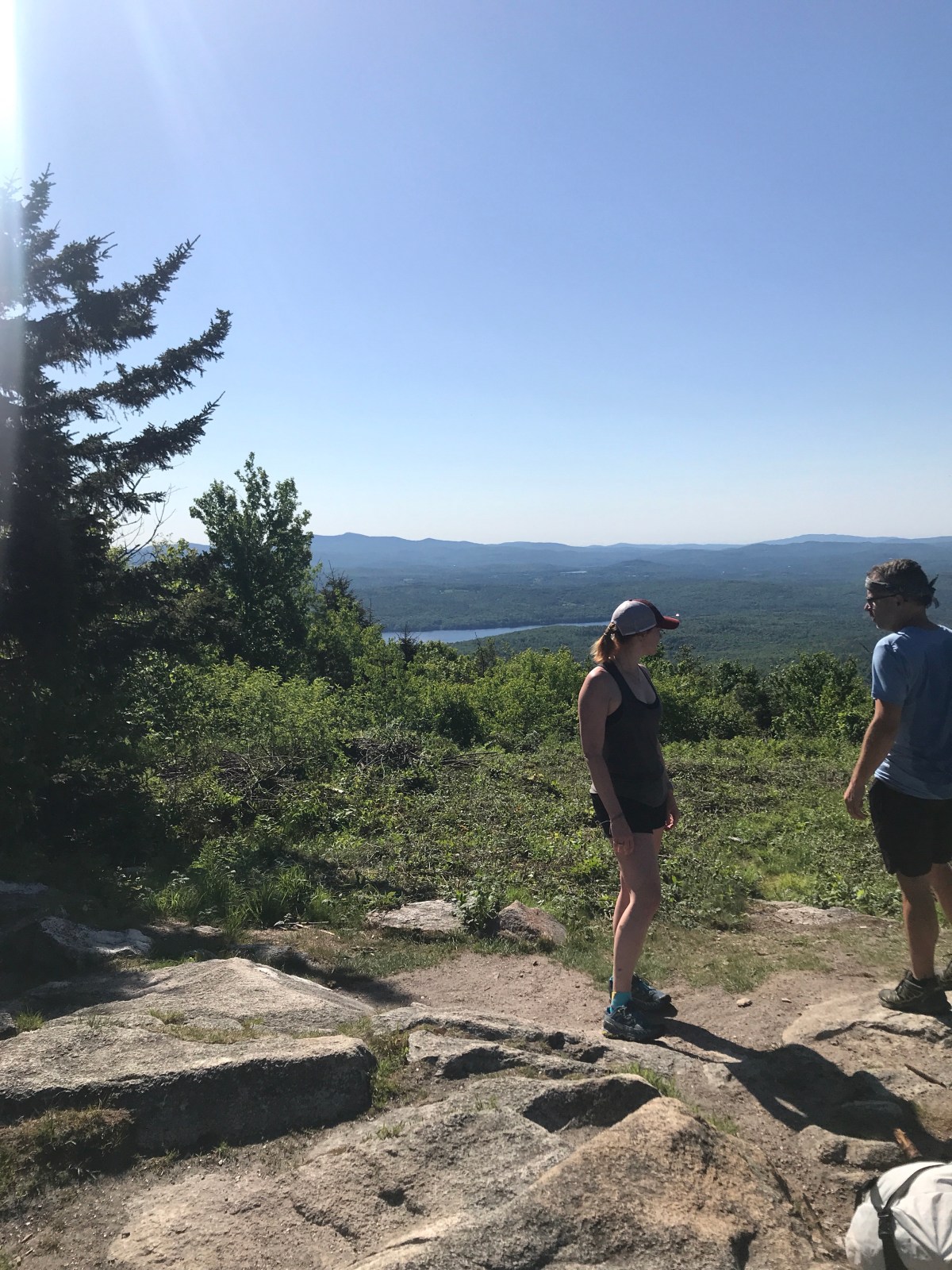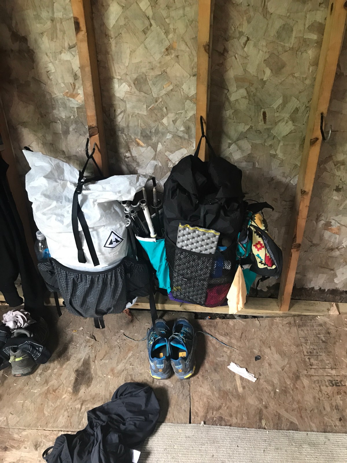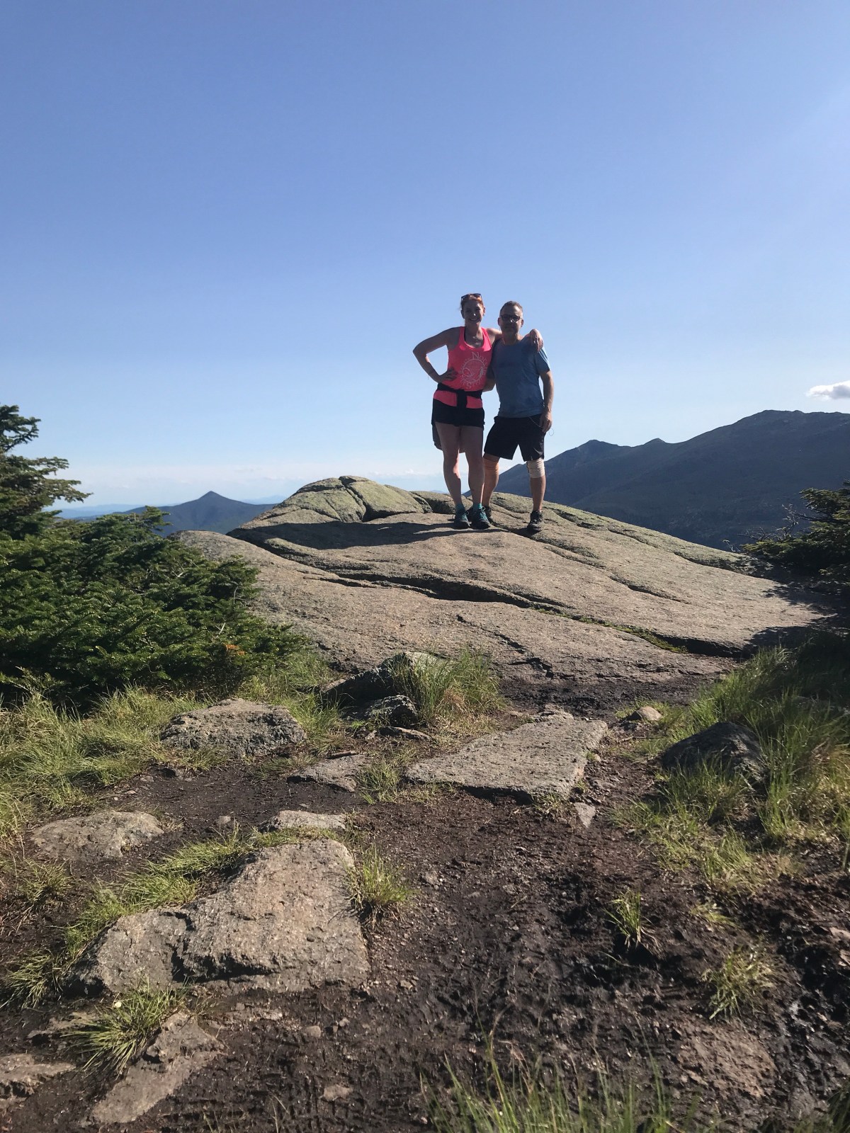 I switched from my usual Lululemon shorts to Barely Baggies for this trip. I wanted something a little thicker, and the pockets were intriguing. They definitely held up well and dried quickly. Good shorts. The tropic comfort tee was essential for the long stretches above treeline in full sun. My legs and hands are sunburnt, but my arms aren’t. Pretty impressed with how breathable and comfortable the shirt was even when I was hot and sweaty. The sleeveless shirts started with is an old Onzie hot yoga shirt. I used to love it, but felt like it was really holding on to sweat this trip. So I grabbed a neon pink tank from The Notch hostel and wore that, so that I could blind people with my shirt, if not my beauty. It was great.