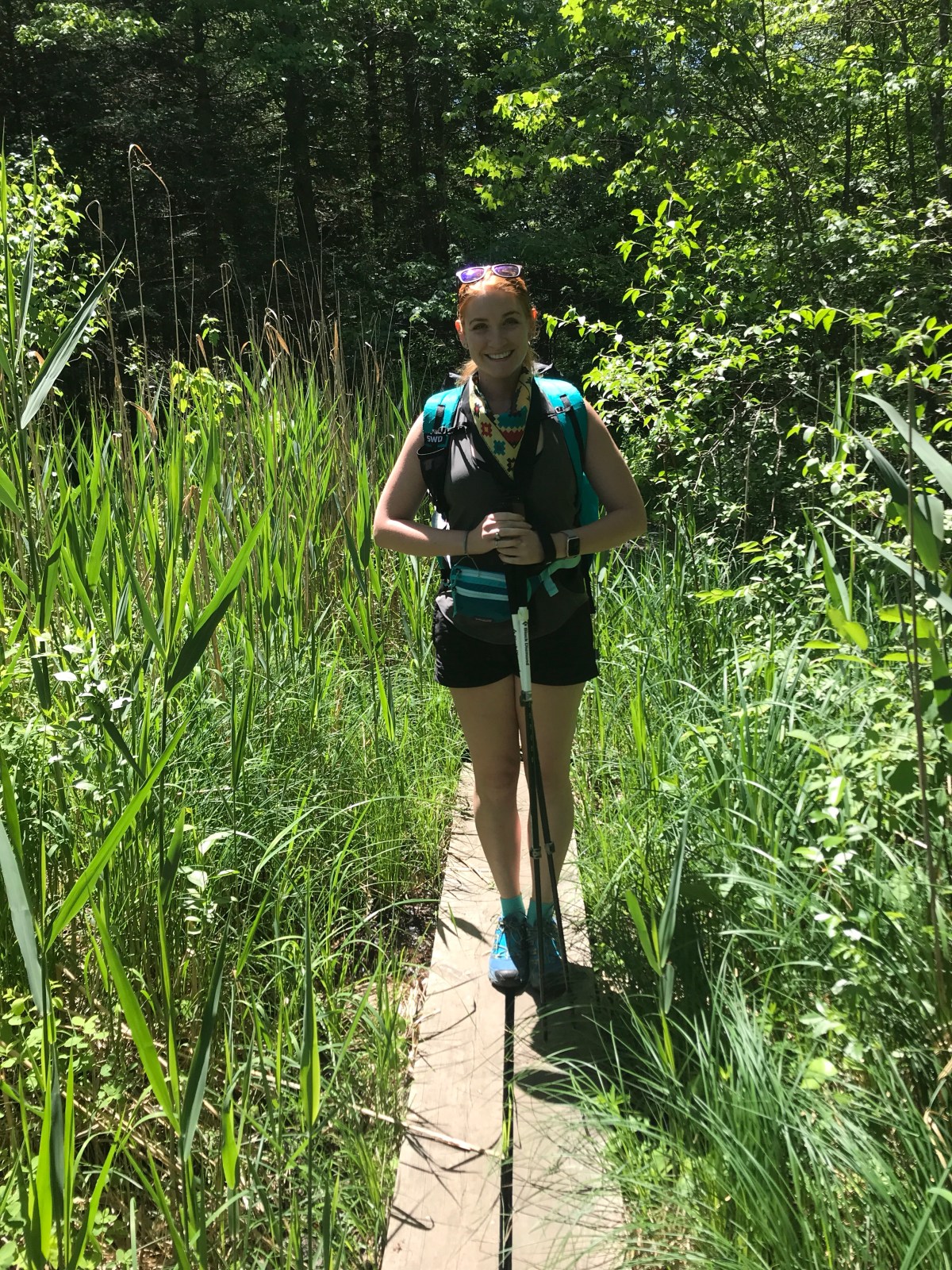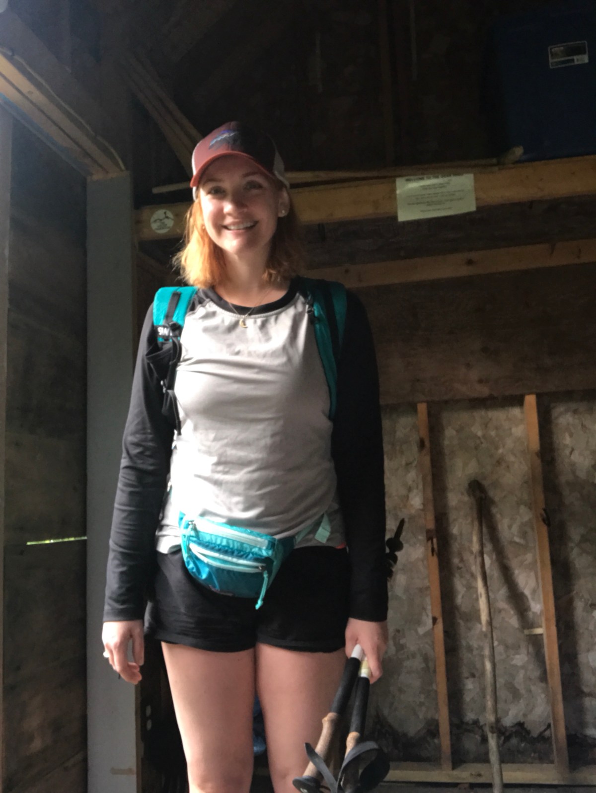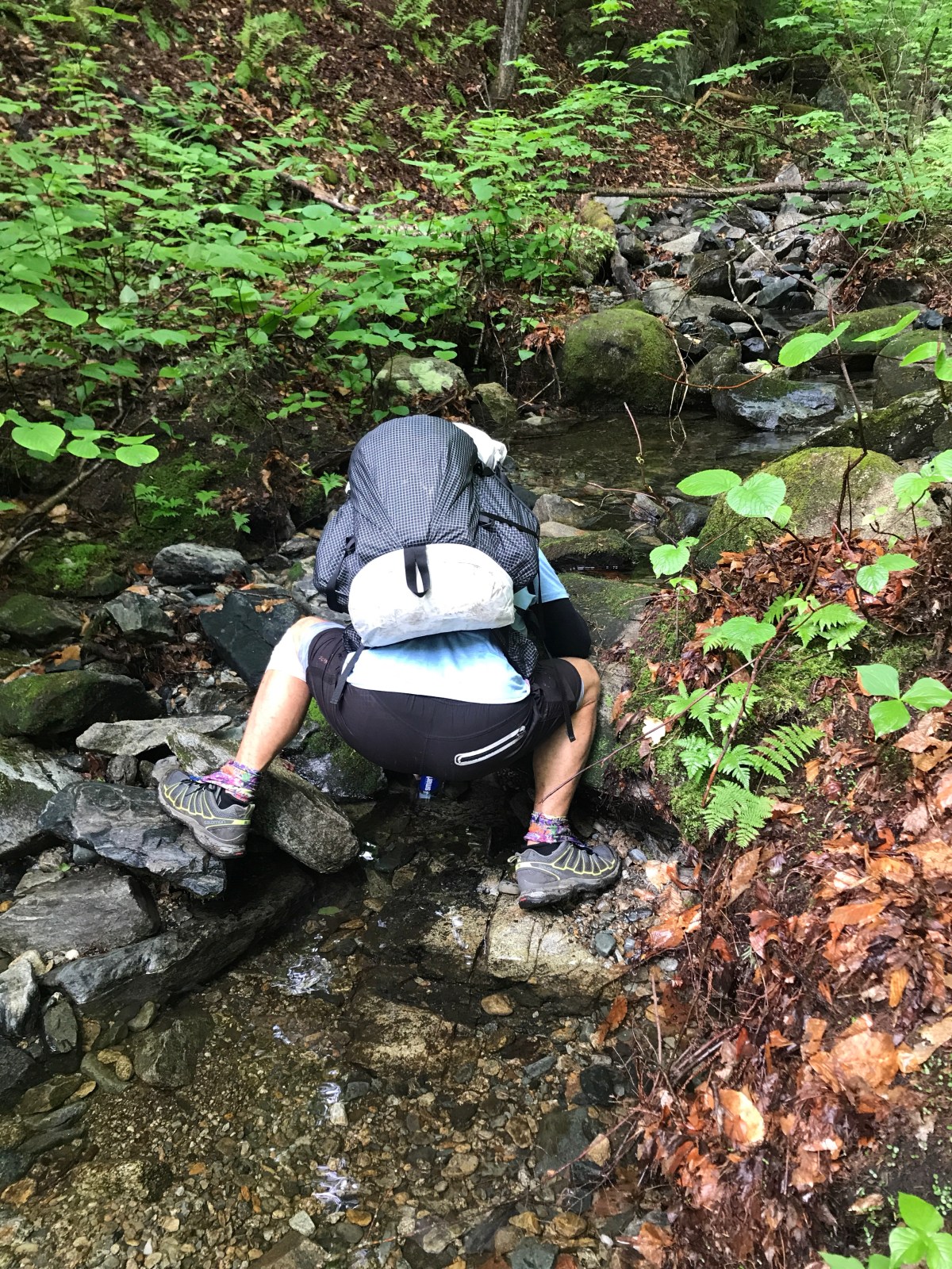 This was a big shoe change for me. I’ve messed around with Salamons, Altras, and Hokas, but La Sportiva may be the end of the line for me. The Ultra Raptors were super grippy on rock and wet rock, even though I was mostly too scared to trust them. I only got one blister the entire time, and that’s a near miracle for me. My feet were definitely fatigued at the end of each day, but they recovered quickly and really, that’s nothing new. Overall, I’m very impressed. I did change up the lacing to take some pressure off my high-volume feet, and added in a heel lock. As usual, wore with a variety of Darn Toughs.