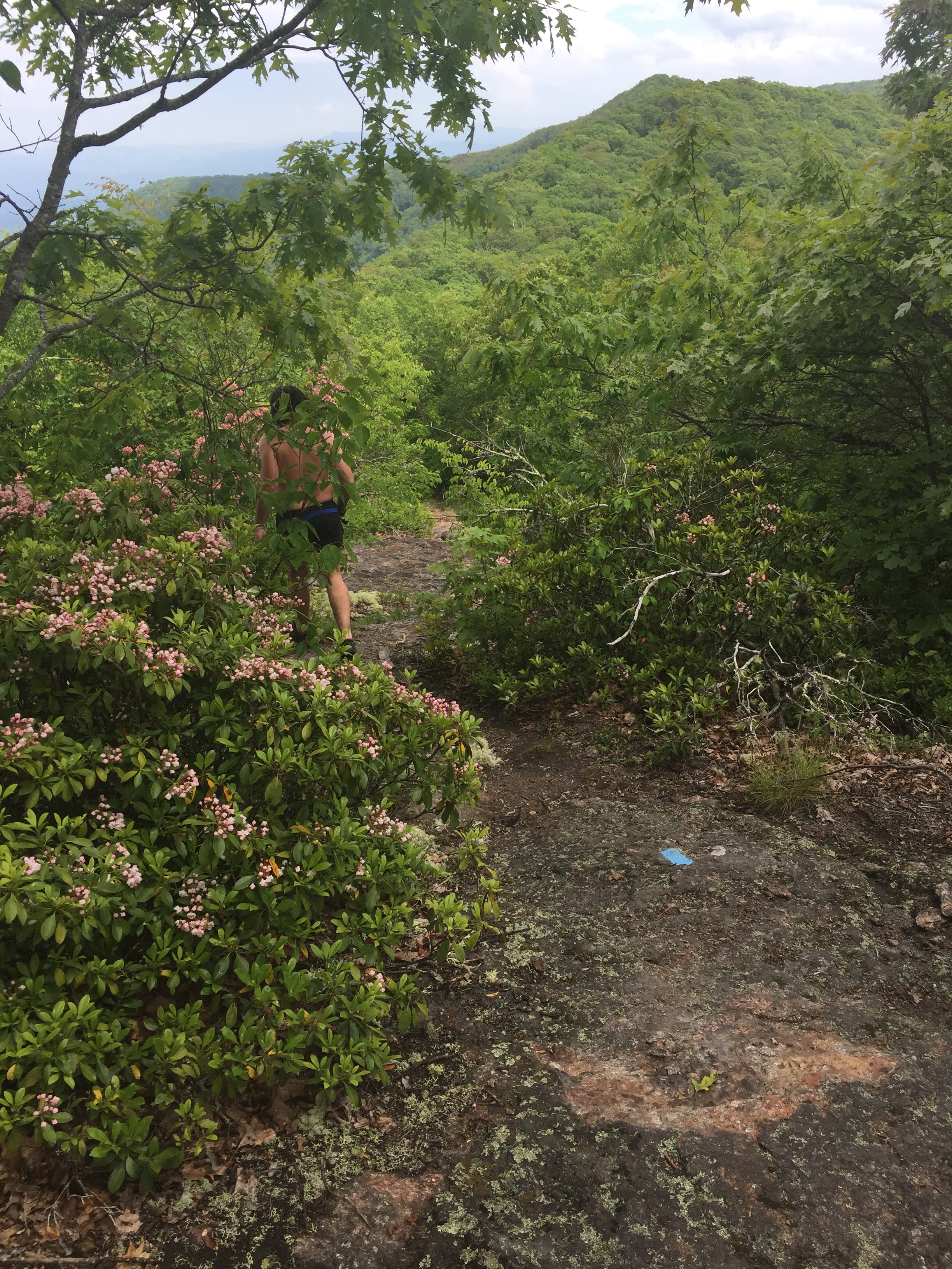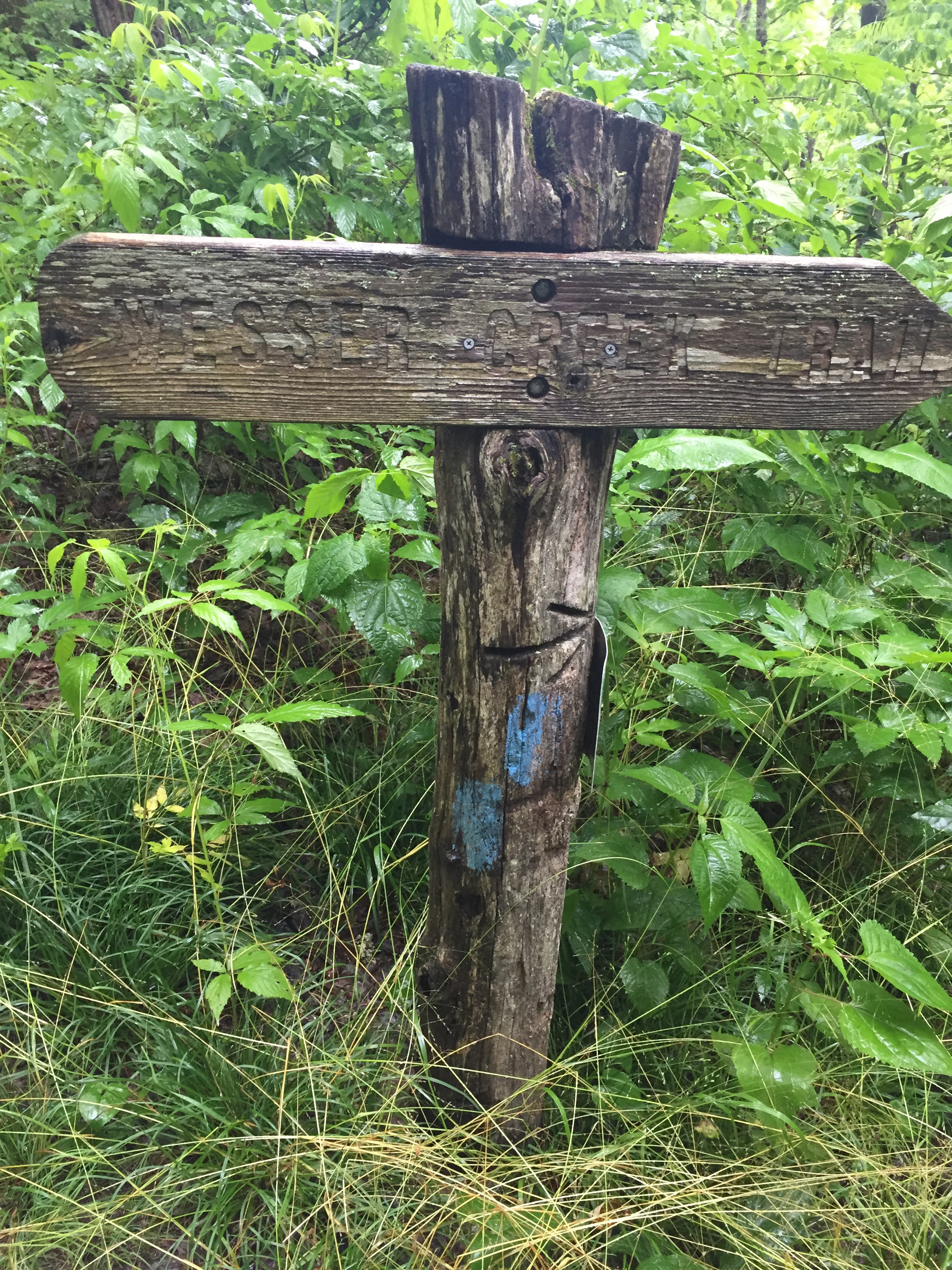We got to Tellico Gap and sat for a minute. Moss and Grateful Dad, friends from PA/NJ/NY section last summer, had a theory that if you took a break at a road crossing, trail magic would…appear. We hoped a truck would pick us up and take us to the NOC. They didn’t. We started the climb up to Wesser Bald. We tried to talk a couple into giving us a ride. No dice.