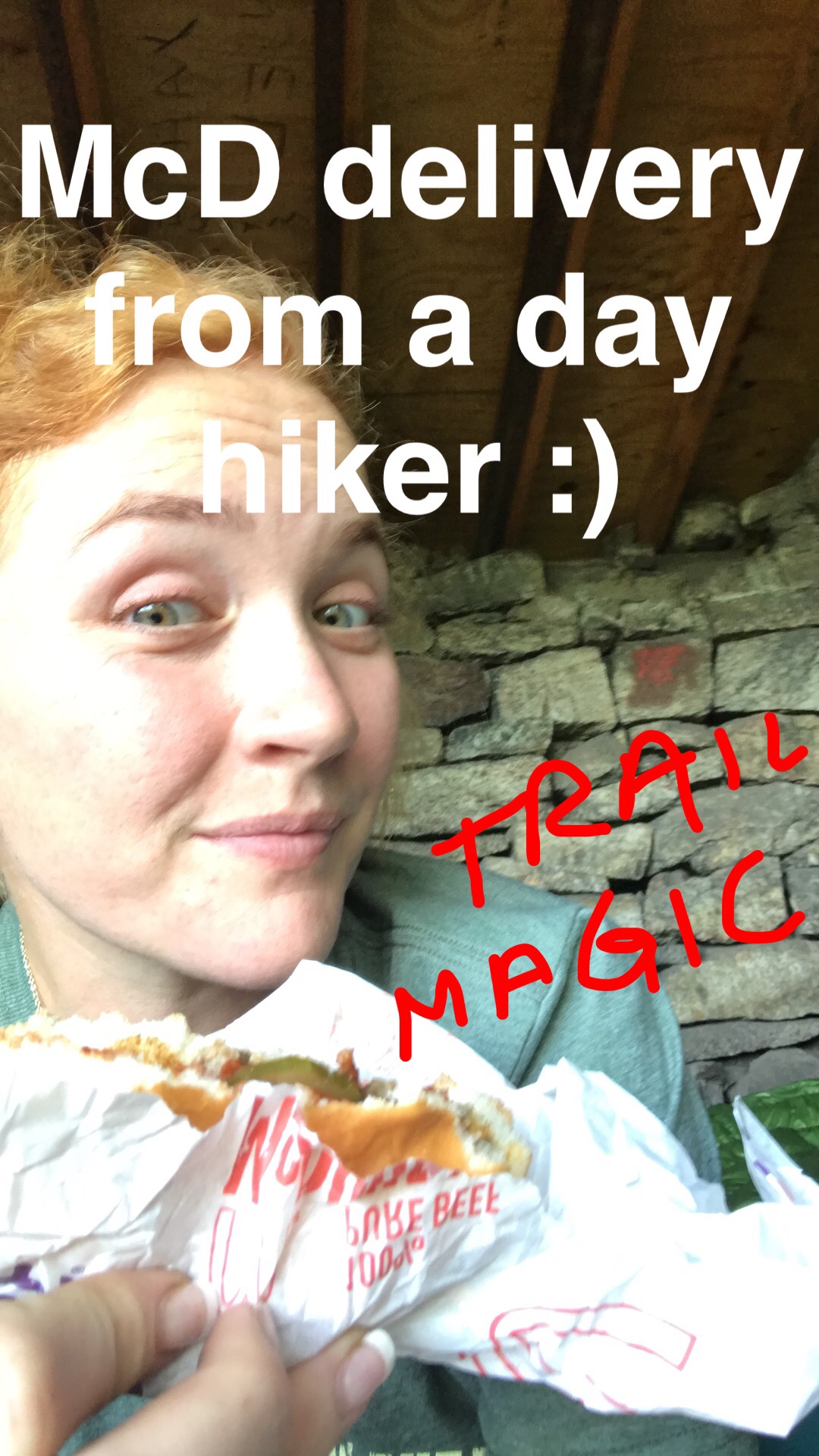 It was rough going, honestly. But we made it to RPH where several NOBOs and a new section hiker were already set up. We decided to tent, and that’s when Guinness and Discount walked up.