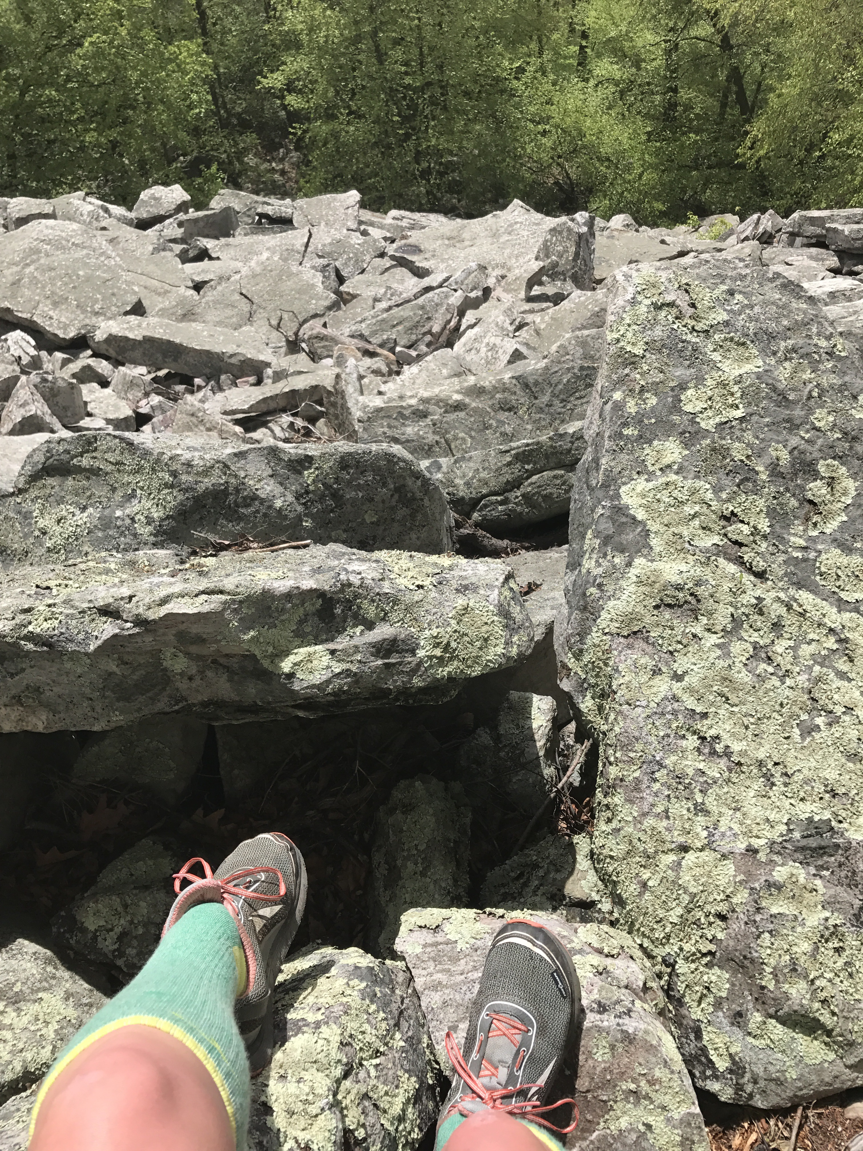 I texted my friends Nikki and Catherine. I basically started out this trip as if I’d never hiked before. That’s how out of shape I was. Pennsylvania made it even worse, with the rocks beating up my feet. The tendinitis I’d been nursing since I broke my toe got worse. My shoes started falling apart, and likely didn’t have enough support left when I started.