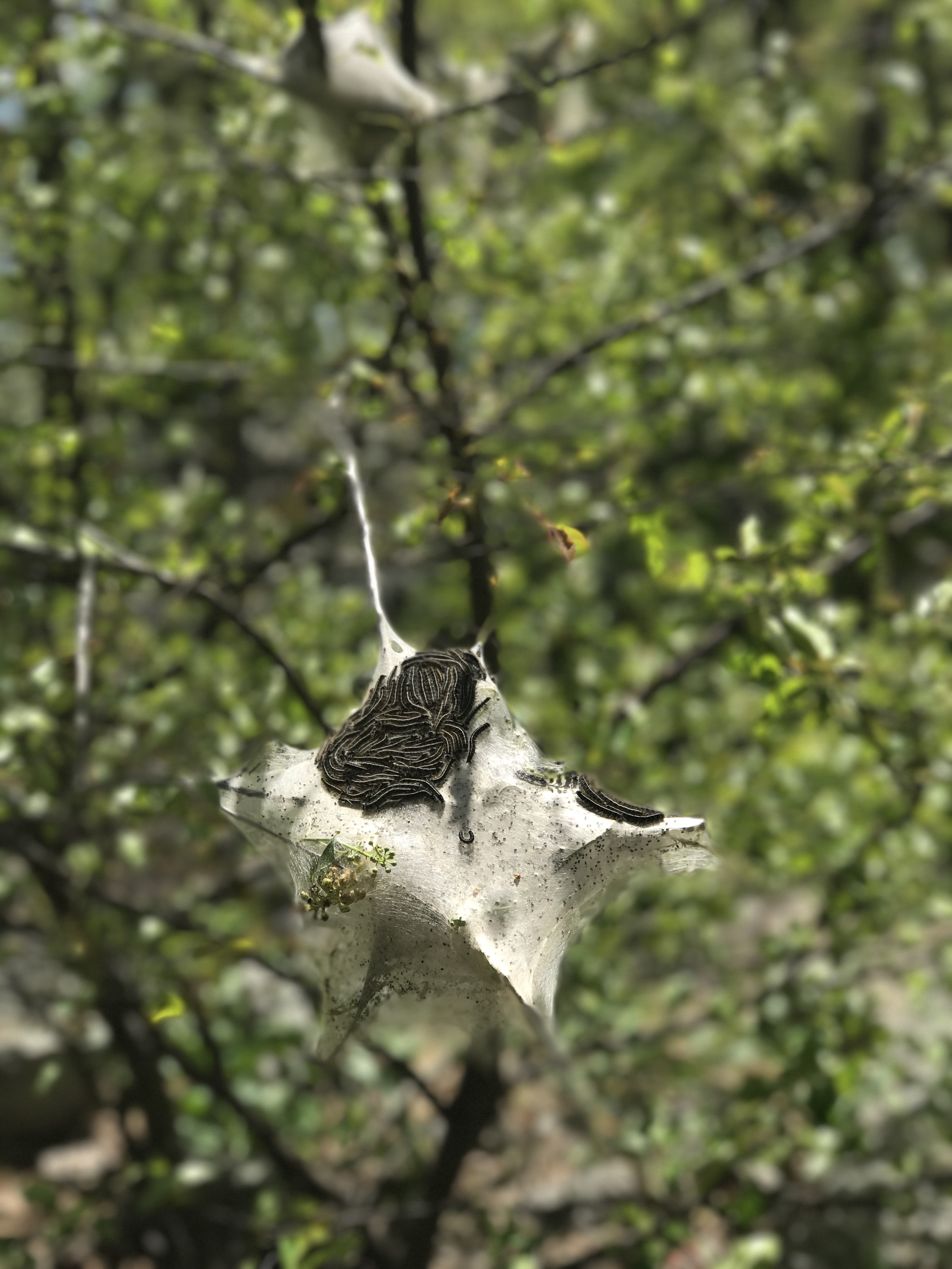 As it turns out, it’s the sound of caterpillars munching. Those bag worms are EVERYWHERE. they’re constantly falling on you and appearing in random places and getting their dumb silk all over your face. And now I can hear them eating. Ugh. Nature.