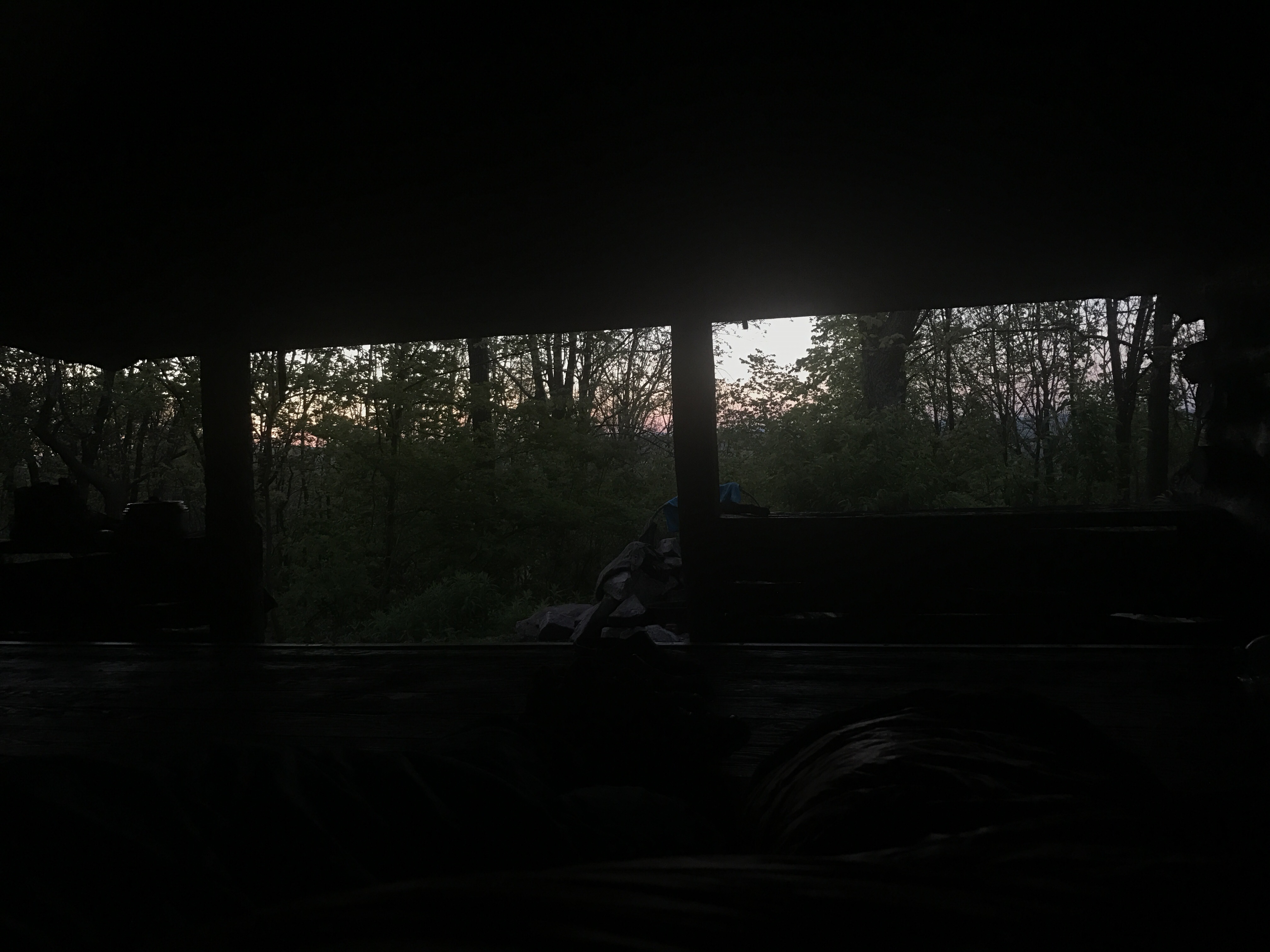 A dang whippoorwill stayed up all night crying out. And Cocoa got up at 5am, along with the rest of the dudes in the shelter. FD and I pretended to sleep until they all left, around 7am. We took our time getting around.