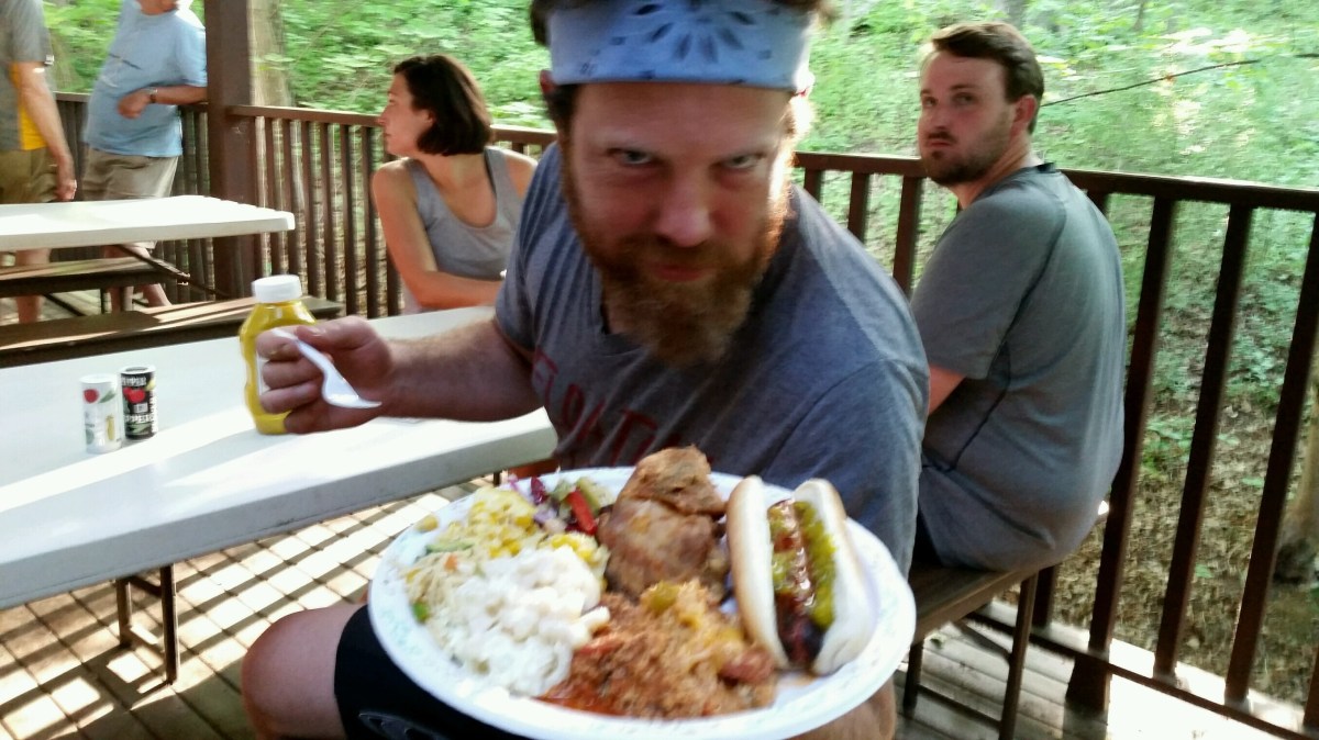And in short order we were at the Appalachian Market. A few quick snacks (dinner didn’t appeal — too hot) and we were back for the last .5 to the graymoor friary. This friary has allowed hikers to tent and camp here since the 70s. I’m set up on a picnic table under a pavilion next to a ball field. The evening was spent with some dudes assembling a soccer goal for a game that will evidently take place at 7am. Hooray!