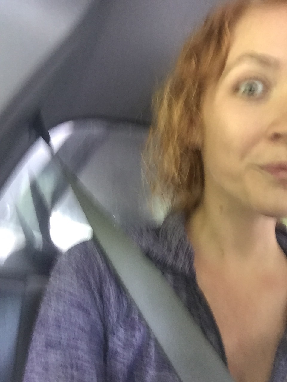 We were fortunately in a school zone, so everyone had to slow down and stare at our lovely, innocent faces and long, stuck out thumbs. We got a ride quickly. An older woman, probably in her mid 70s, pulled over. She had neat, tidy grey hair and was listening to NPR in her neat, tidy sedan. We explained that we had stayed at the church and just needed a ride back into town. She let us in and we drove off.