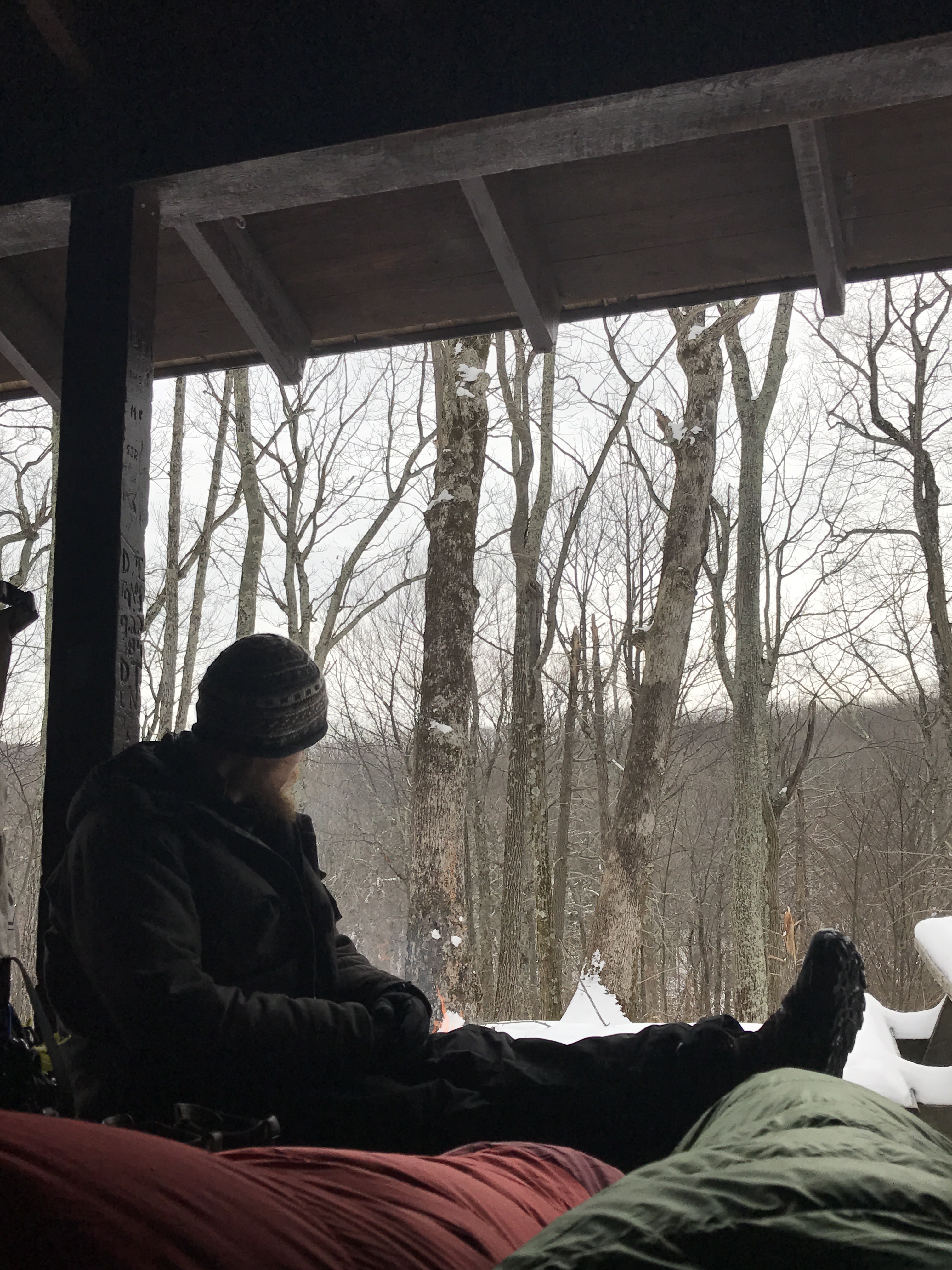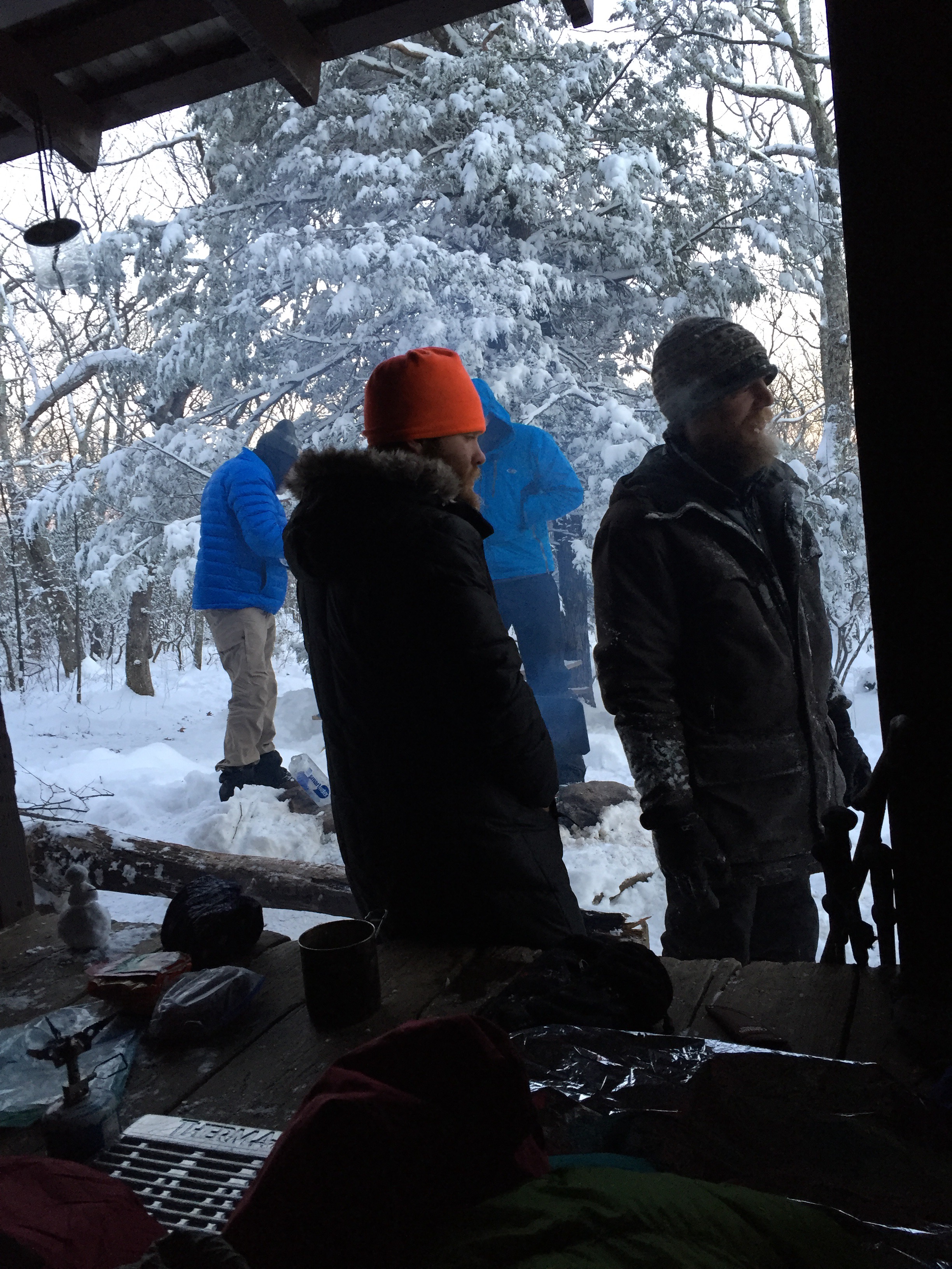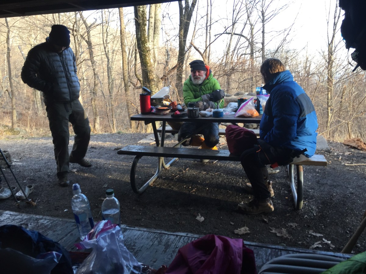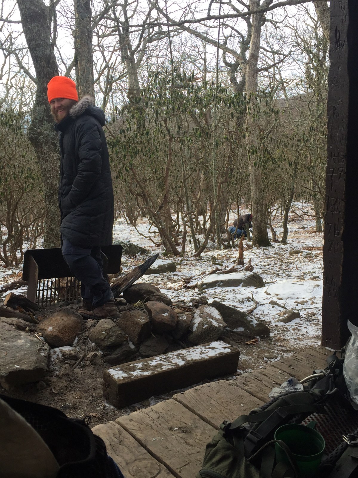 We looked at the plan for the day. We were supposed to do 14 miles, but that put us at a shelter with no water 4 miles before or 6 miles after. That’s ok in warm temps but terrible in cold temps. So we changed to a short day- 5 miles to a huge 20 person shelter with a good water source!