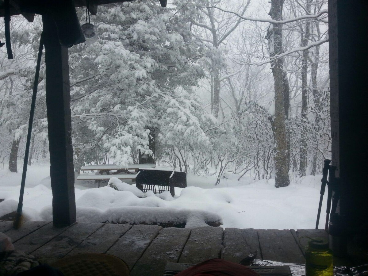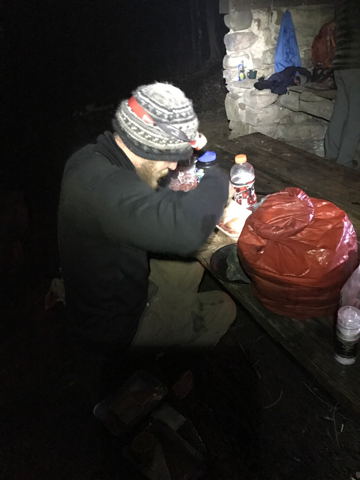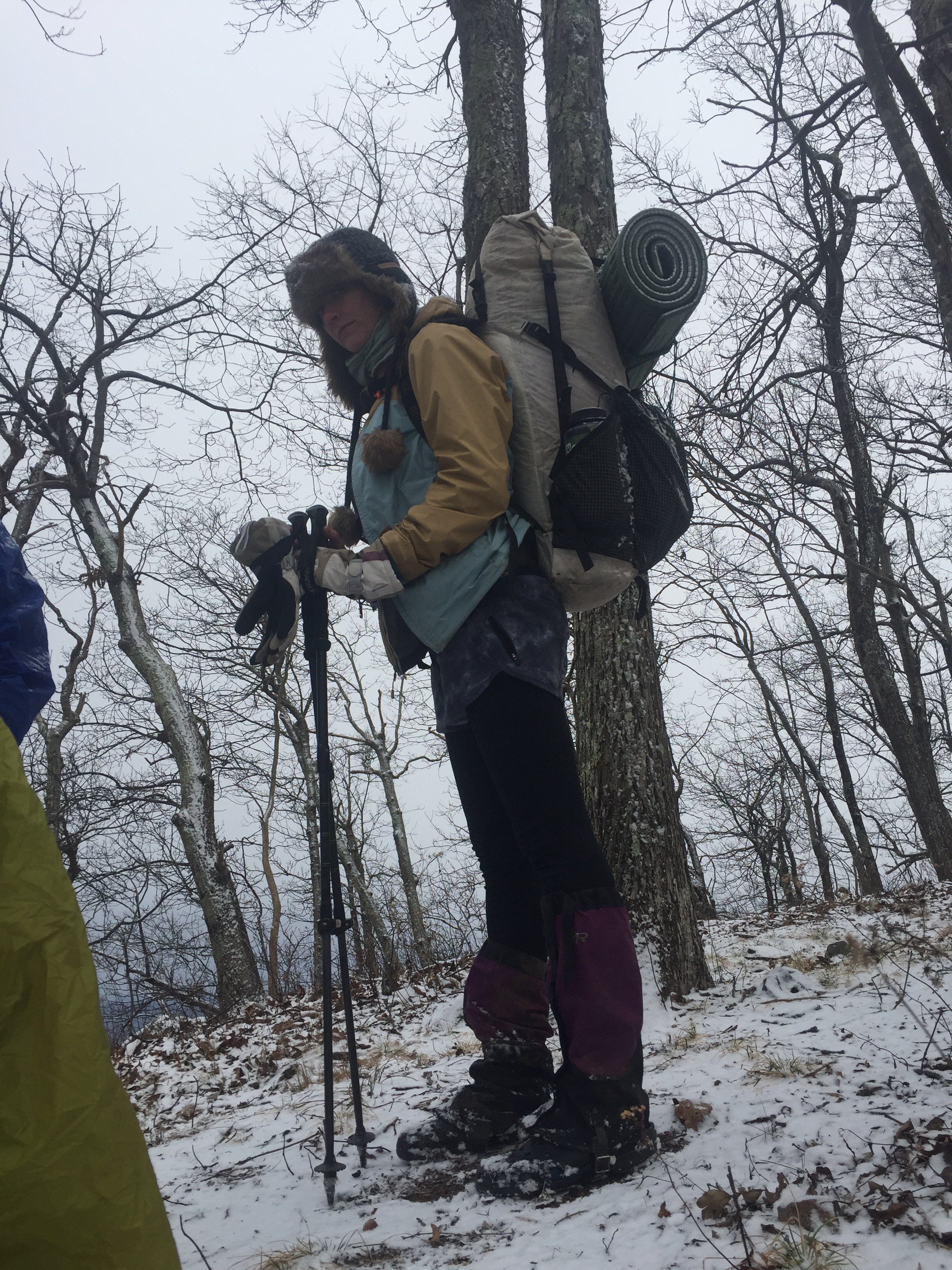 We looked at the plan for the day. We were supposed to do 14 miles, but that put us at a shelter with no water 4 miles before or 6 miles after. That’s ok in warm temps but terrible in cold temps. So we changed to a short day- 5 miles to a huge 20 person shelter with a good water source!