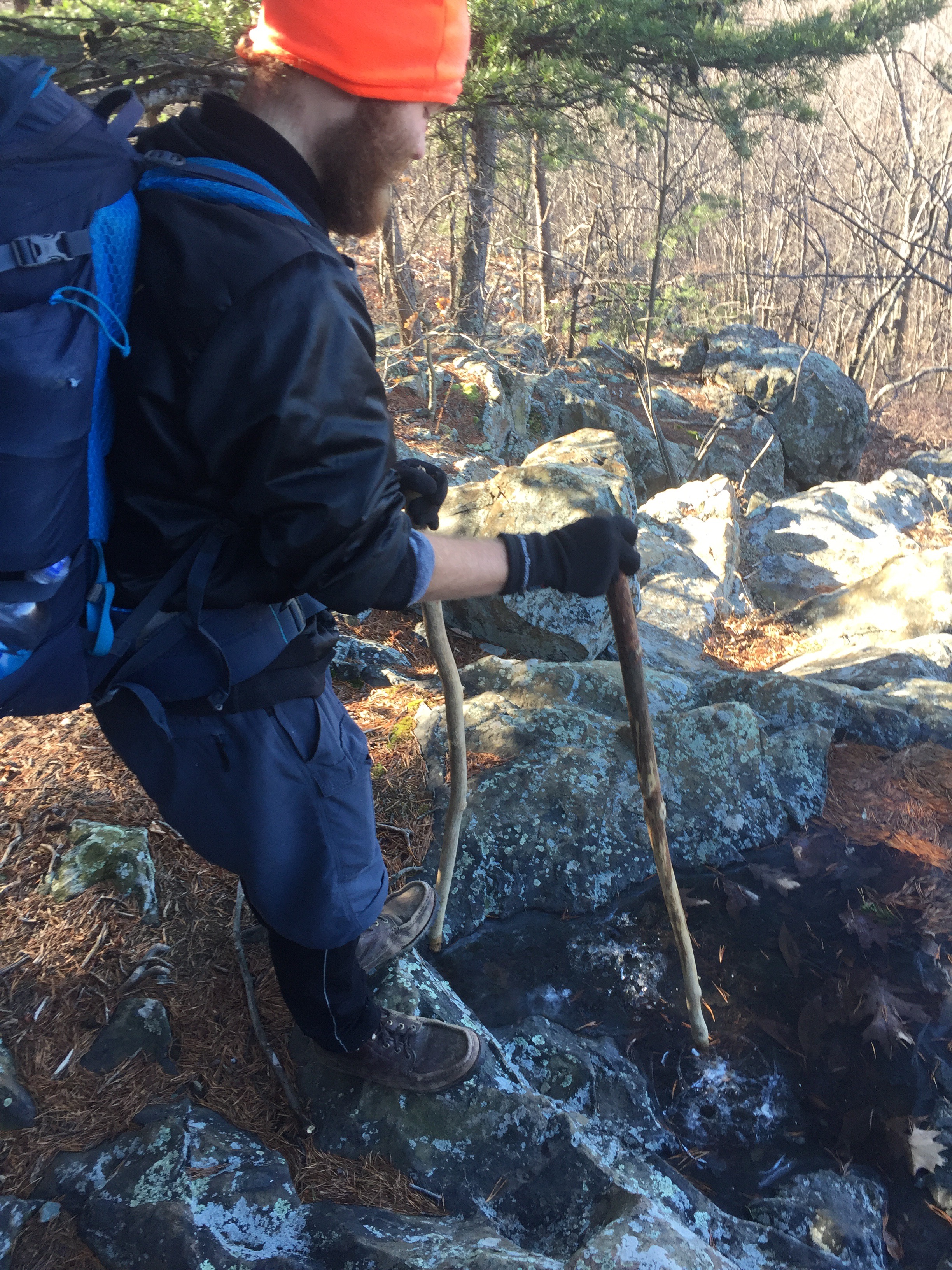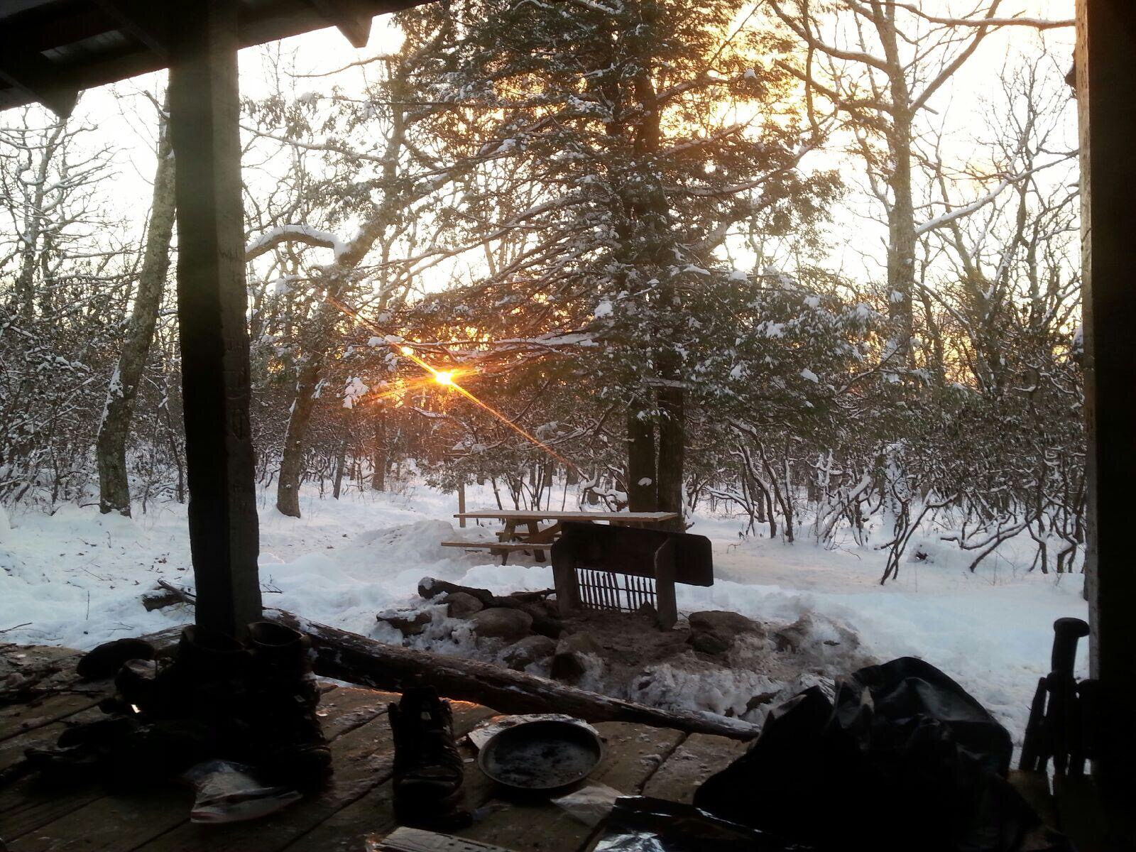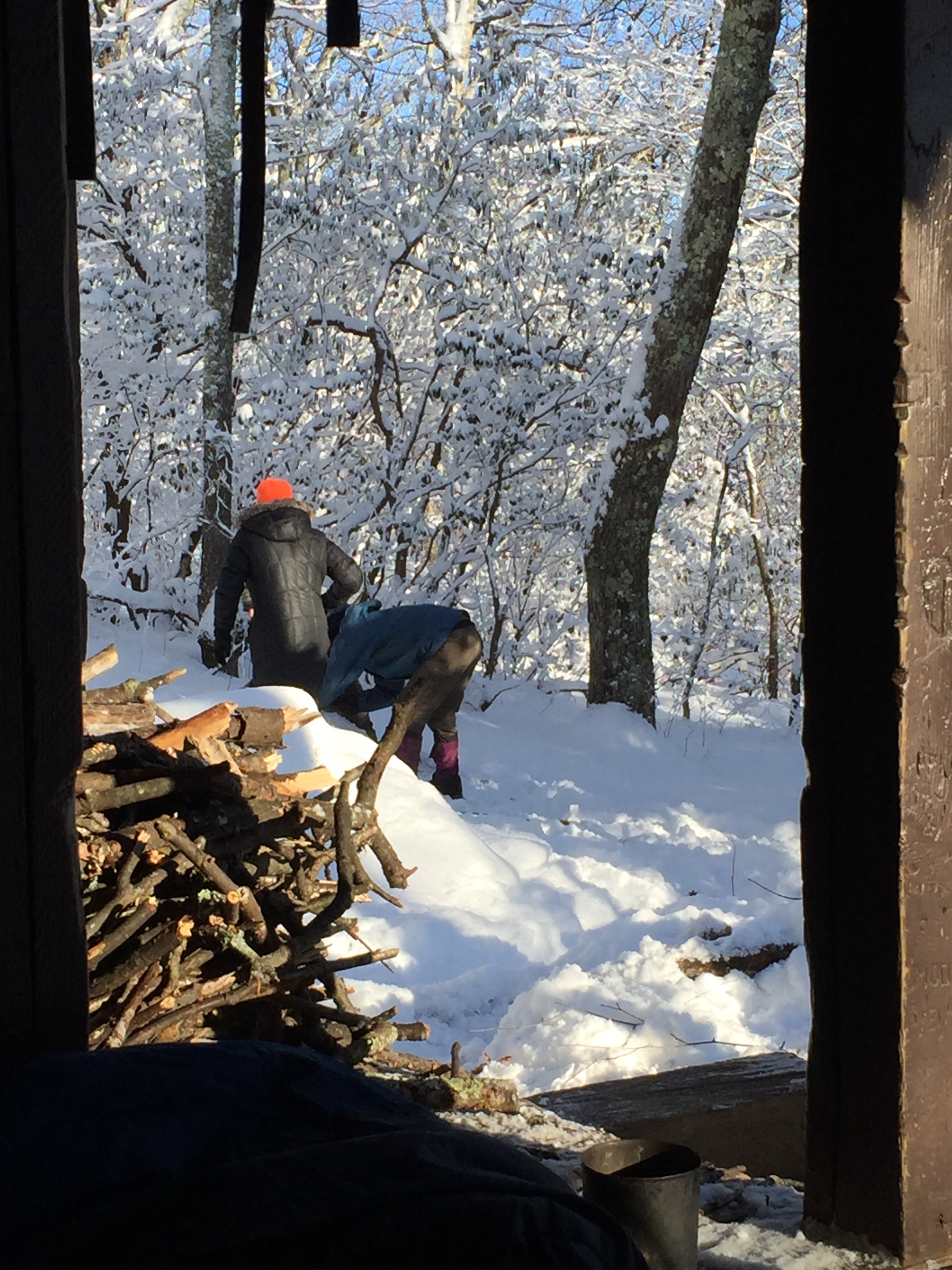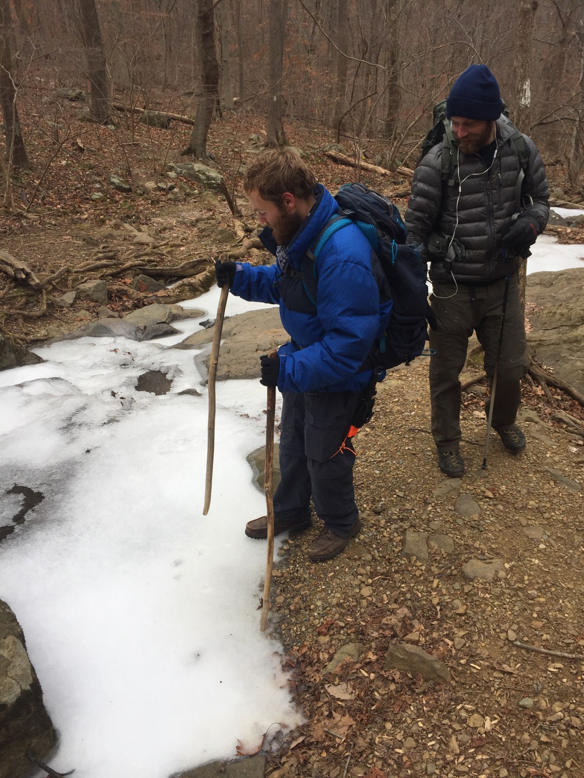 We looked at the plan for the day. We were supposed to do 14 miles, but that put us at a shelter with no water 4 miles before or 6 miles after. That’s ok in warm temps but terrible in cold temps. So we changed to a short day- 5 miles to a huge 20 person shelter with a good water source!