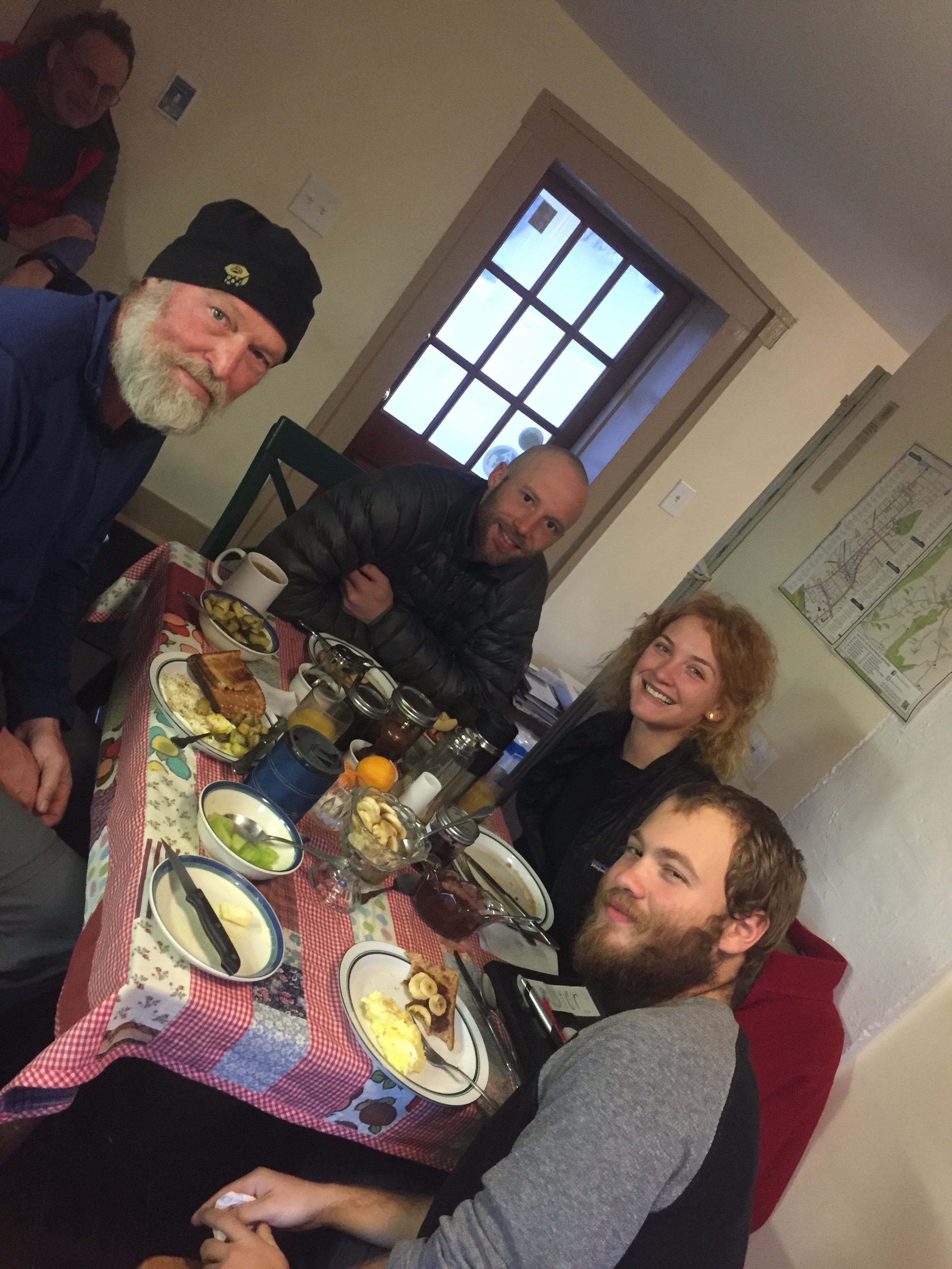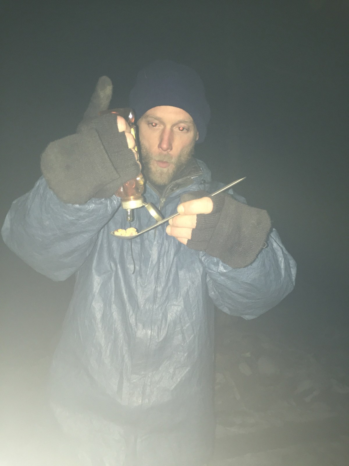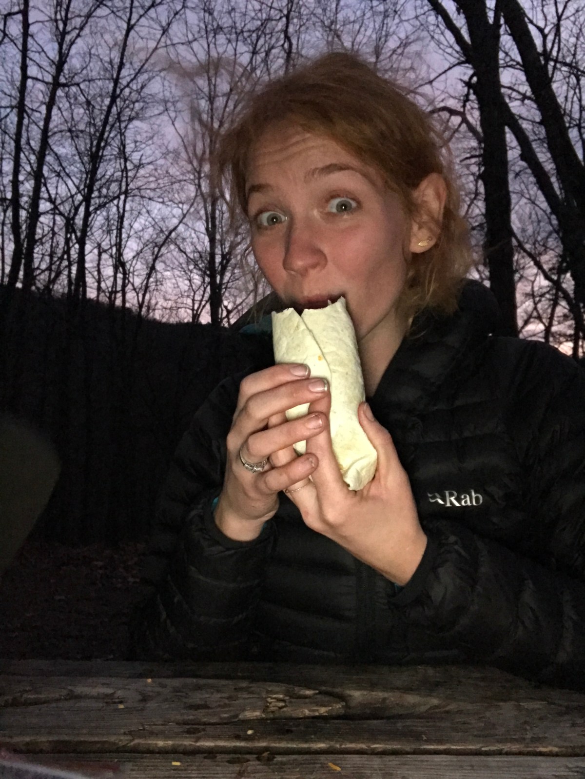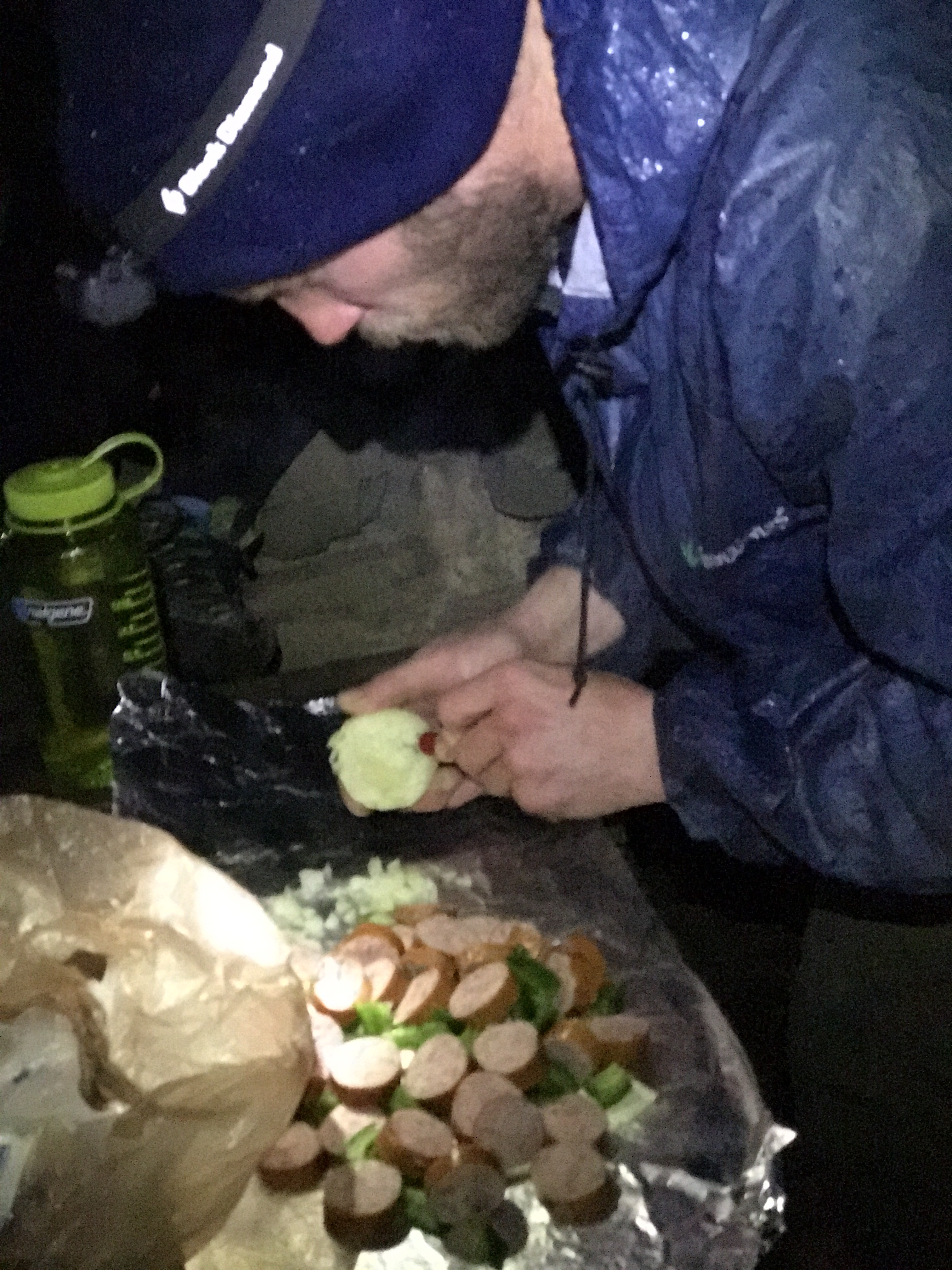 Sar Tec made us an incredible dinner- sausages and chicken and rice with cheese on tortillas. We enjoyed the fire Rabbit made and actually sat around the picnic table to eat, since we weren’t freezing for once. It was nice.