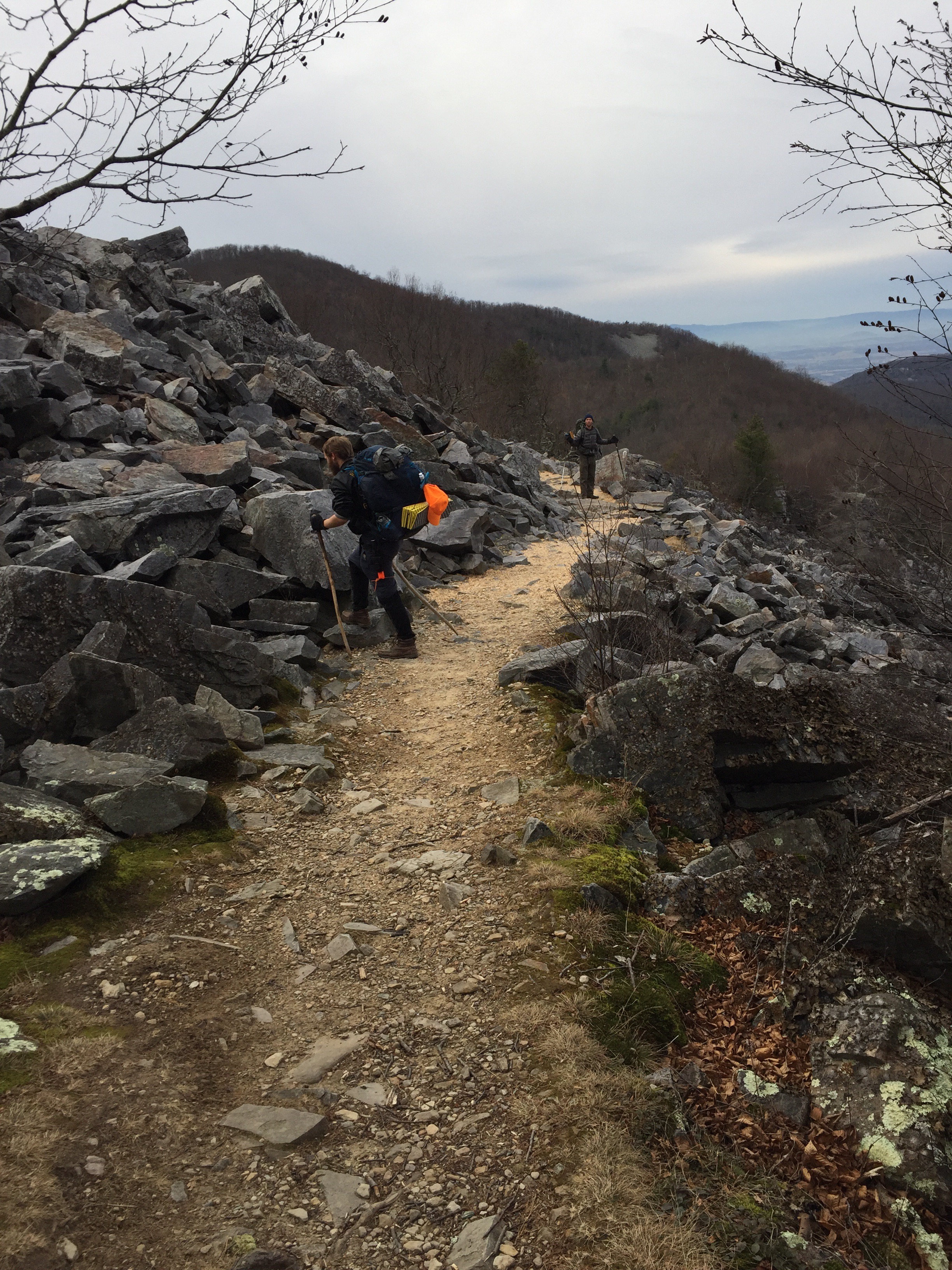 I made it up to McAfees Knob, then flew down the next few miles. My pack felt so light, and my Altra Lone Peaks were so comfy, and the trail so well switch-backed, I actually ran most of the trail until I found my dad. I immediately regretted it.