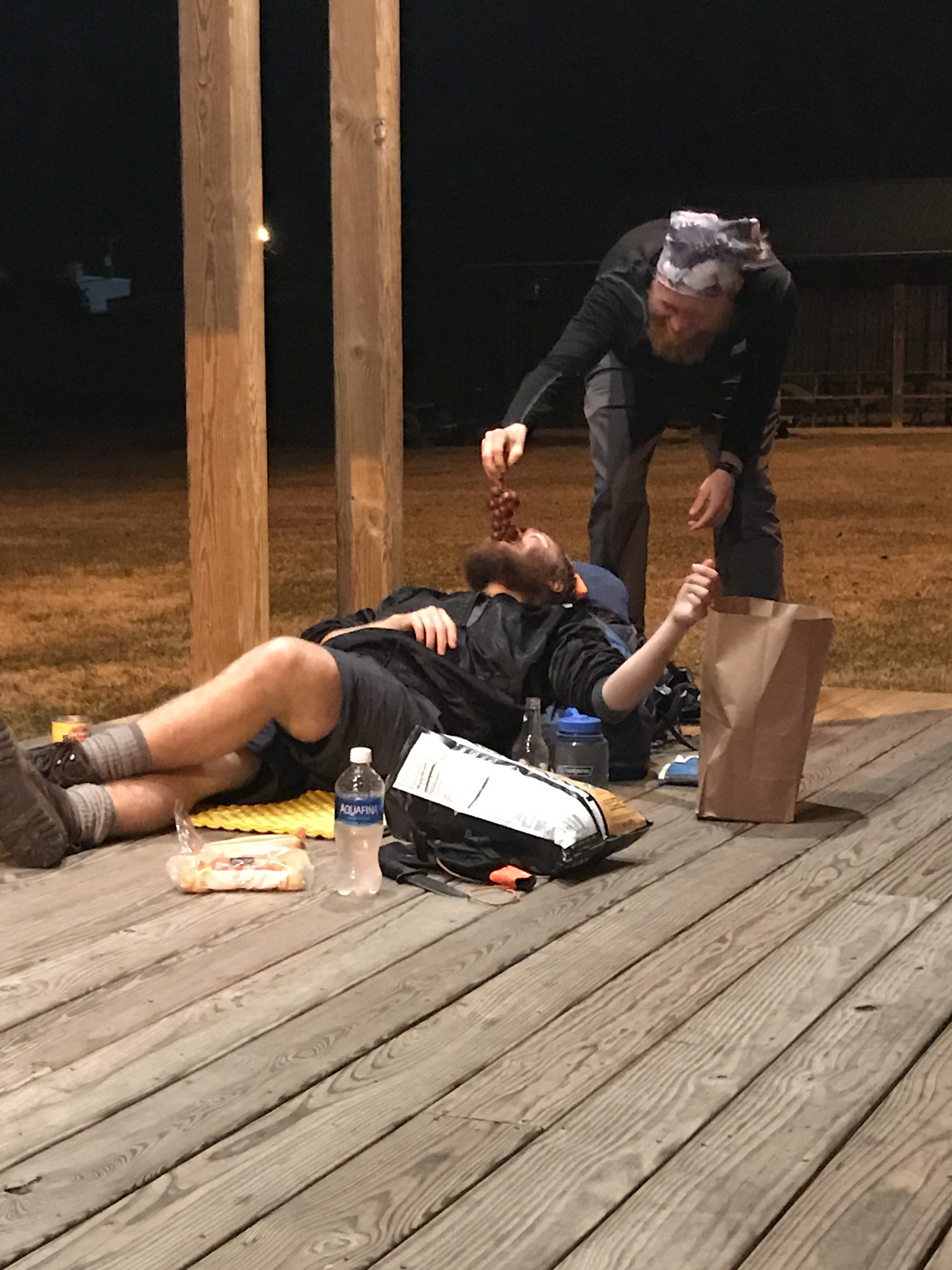 I walked the 1.4 back to Troutville from Daleville and then another 1.2 to the fire station. On the walk, ANOTHER sobo caught up to me. Happy Pants has been mostly alone his entire thru-hike, and now he’s part of the winter Sobo bubble.