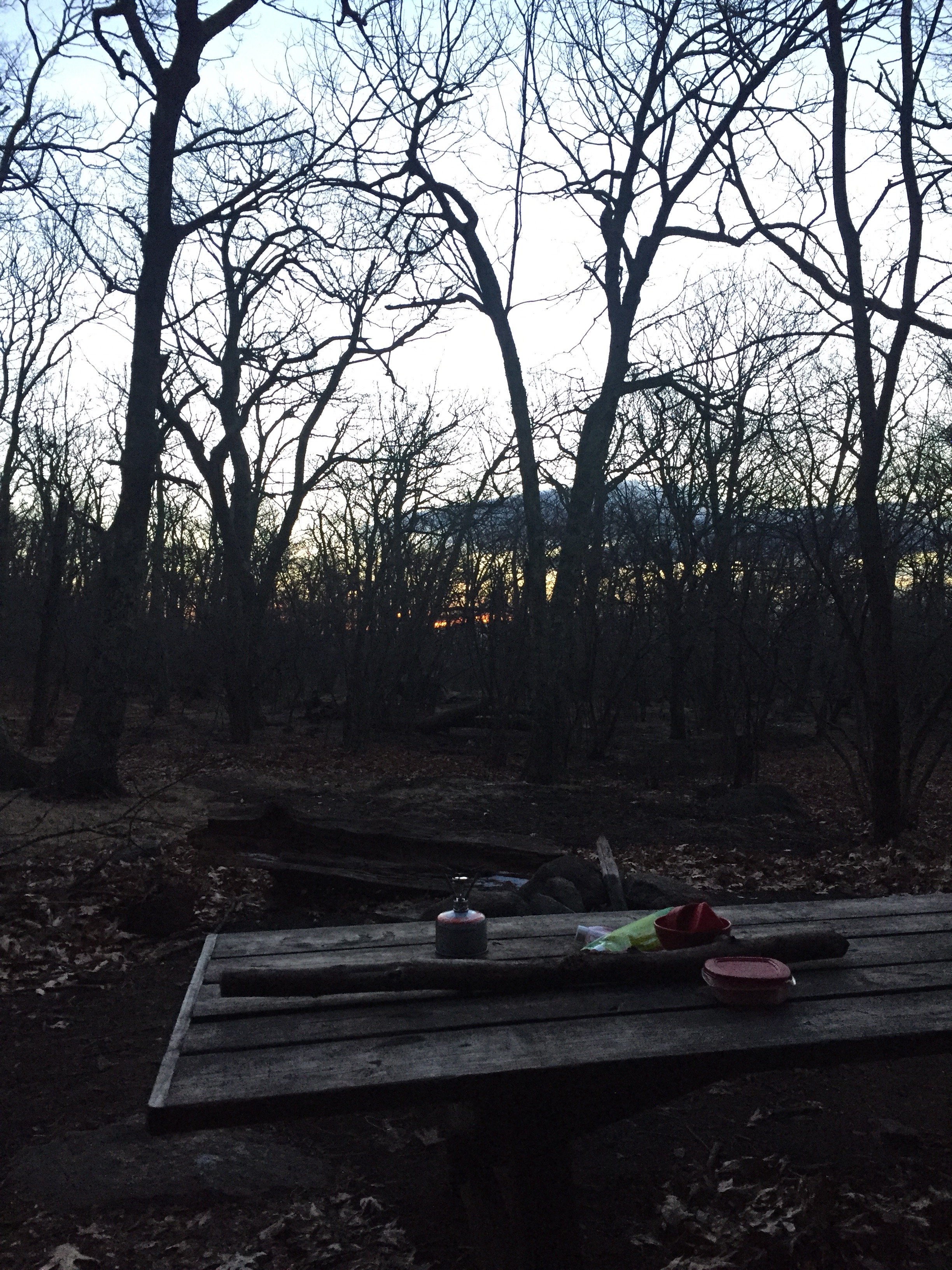 We settled in and cooked dinner– hot dogs and, for me, the baked potatoes I’d been trying to get since waynesboro. It was everything I’d dreamed of.