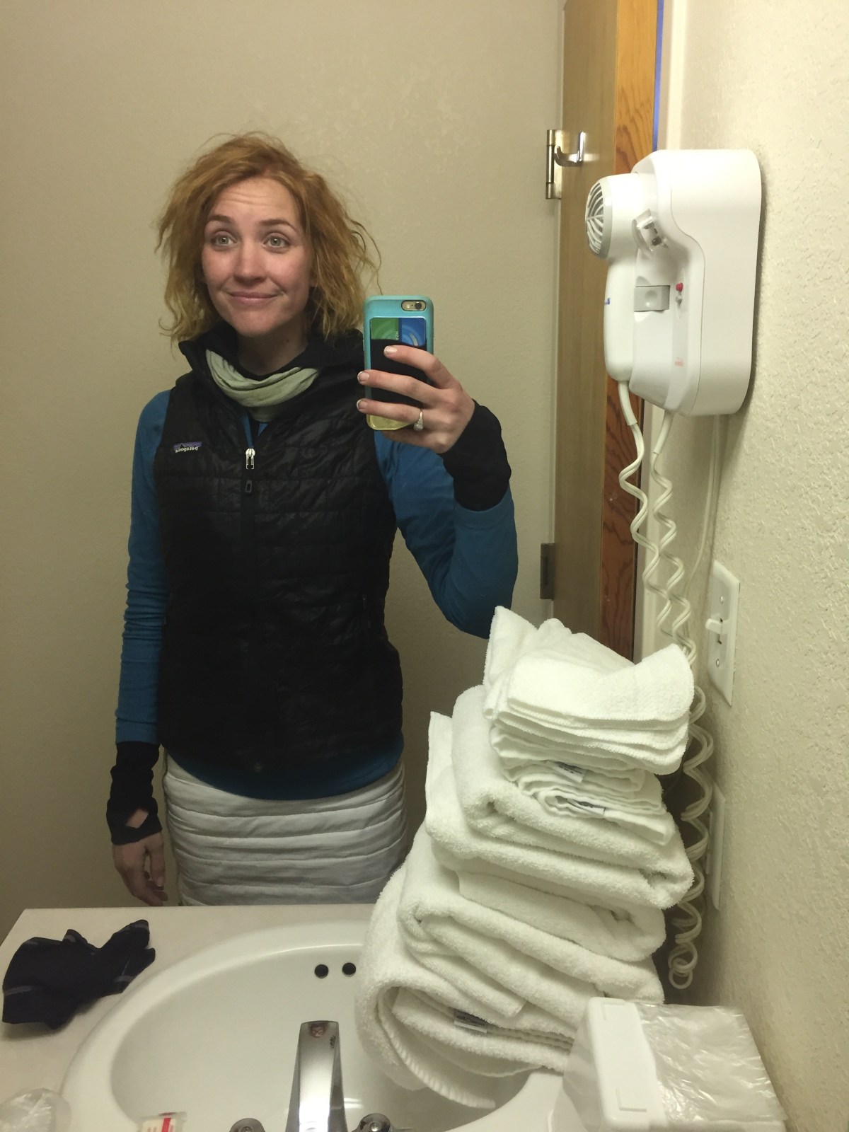 We were sweating in the hotel room, but no one wanted to cut the heat down. Once you’re warm…
